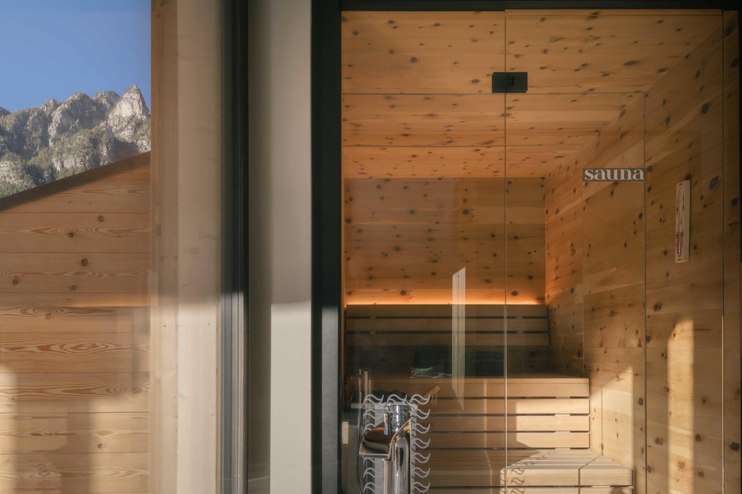 Drinnen: Zirbenduft, klare Linien, wohltuende Ruhe.