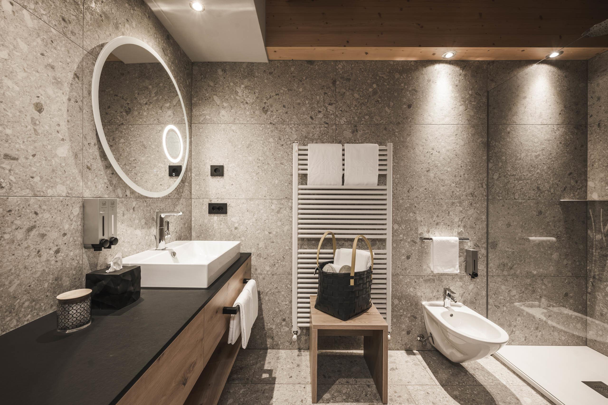 In unseren Zimmern und Suiten haben wir unsere Lieblingsberge ins Resort geholt: Genießen Sie ein luxuriöses und gleichermaßen komfortables Ambiente, das von wärmendem Stein und heimischen Hölzern, den wohltuenden Düften von Almkräutern und feinstem italienischen Design geprägt ist.