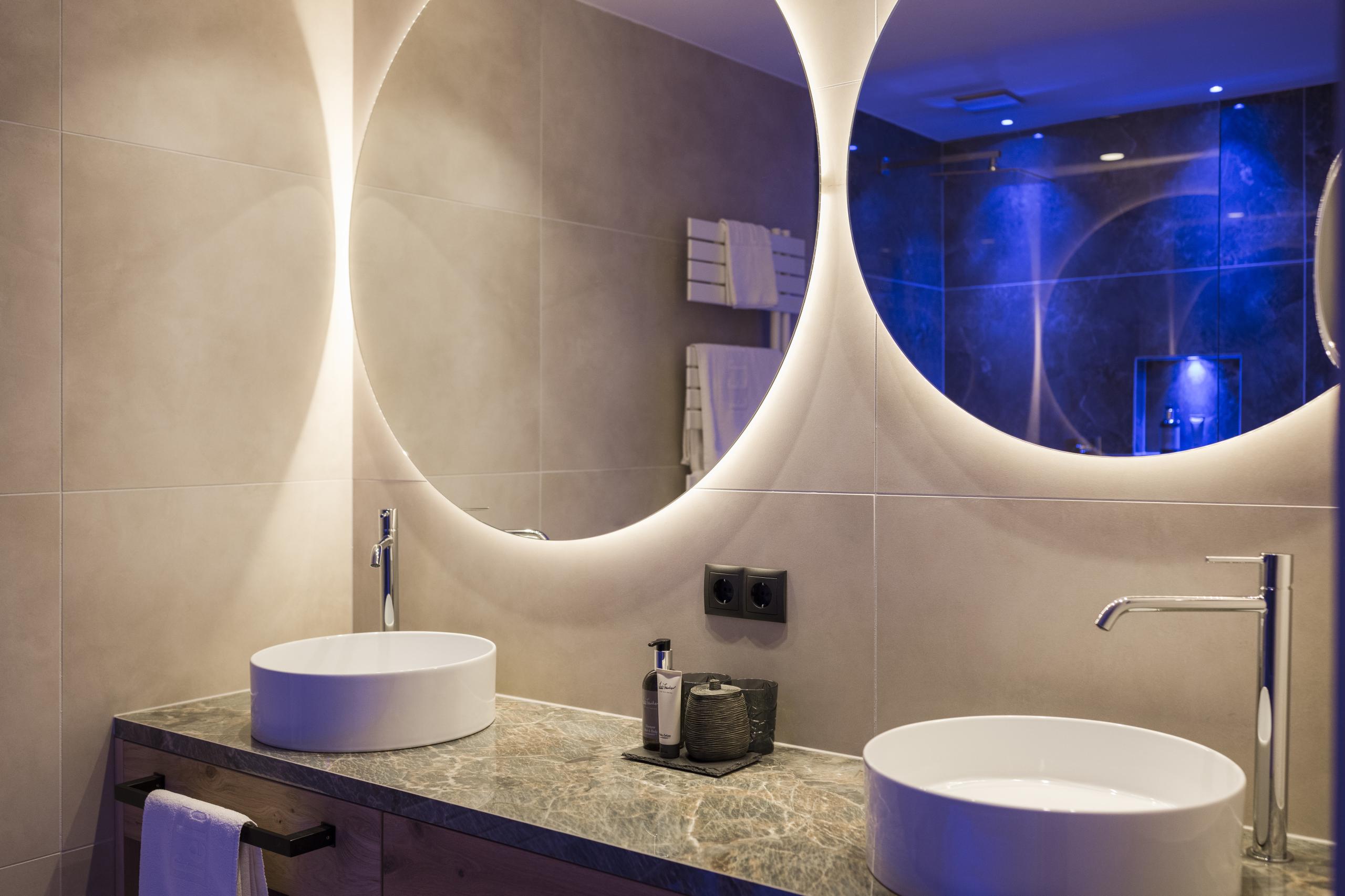55 m² - Lichtdurchflutet und mitten im Grünen. Unsere Natur Suite mit exklusiv ausgestattetem Wohnraum mit großer Kuschelecke, Holzboden, Naturholzmöbeln, separatem Kinderzimmer mit zwei getrennten Betten, modernem Badezimmer mit großer Walk-In-Dusche, Doppelwaschbecken, separatem WC, Minibar, Safe, 2 Flatscreen TV, Telefon, kostenlosem WLAN, Ost-Panoramaterrasse mit Relaxliege, Garagenplatz und Klimaanlage.