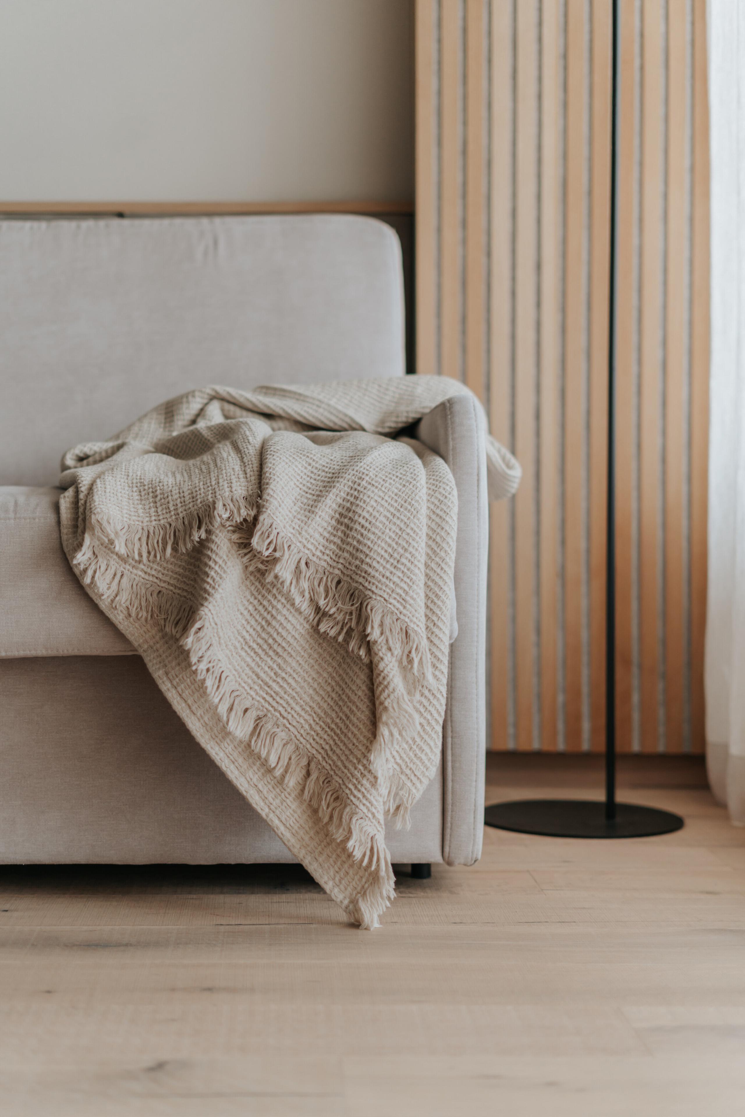 Getrennter Wohn- und Schlafraum durch eine Glasschiebetür mit Verdunkelungsvorhang
