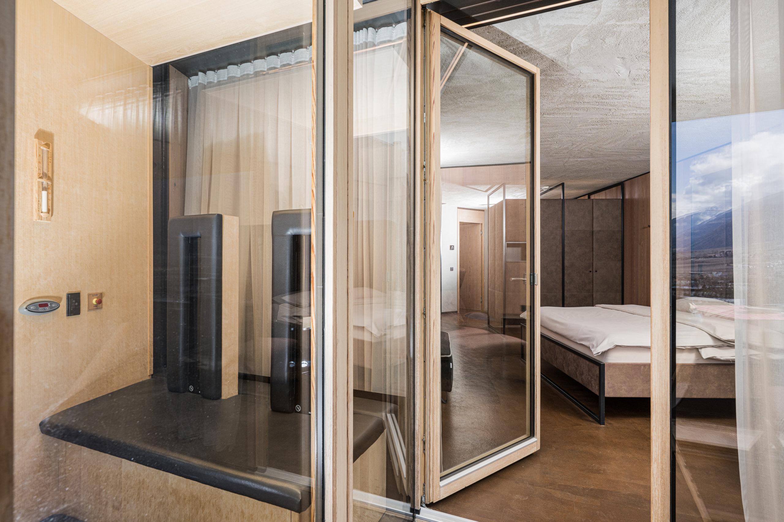Kuschelige, moderne Suite, Einrichtungen aus Naturmaterialien, Naturestrichboden in Erdfarben, gebürstetes Vollholz in heimischer Lärche, grober Spritzputz an der Decke für angenehme Raumakustik, Schrank und Bett aus Leder, Schreibtisch aus Leder, Stehlampe mit Schlafcouch (französisches Maß) und Designer Lounge Sessel mit Beistelltisch, Flat TV, Badewanne mit Sicht in die Natur, Bad mit Doppel- Waschbecken, Dusche, WC mit Bidet, kostenlos W-Lan, Minibar, Safe und Garage - keine Haustiere erlaubt