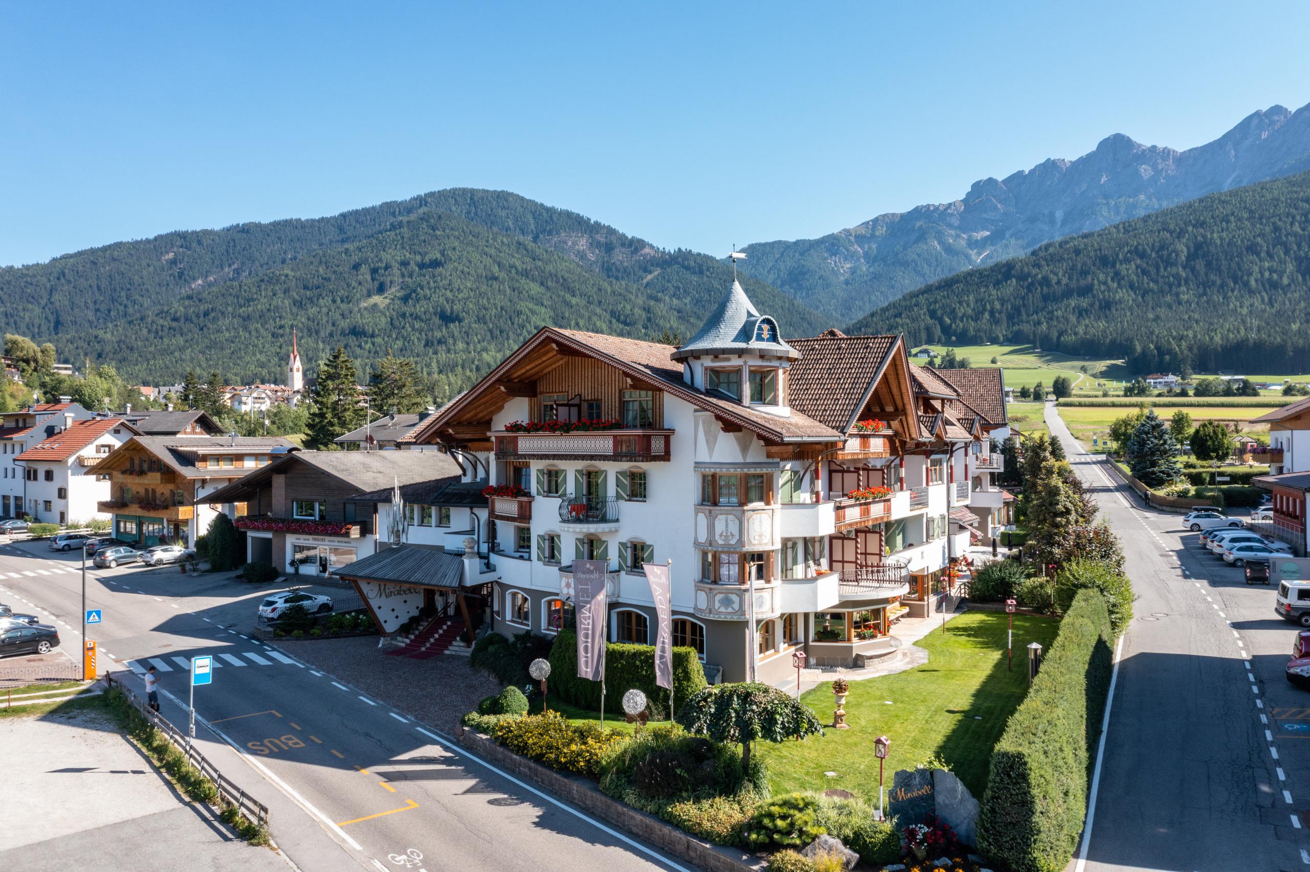 Das Mirabell Dolomites Hotel in Olang liegt 2 Autominuten von der Talstation des Skigebiets Kronplatz, Südtirols Skiberg Nr. 1, entfernt. Durch den Talkessel zieht sich eine 4 Kilometer lange Loipe, die dazu einlädt, Olang im Winter auf Skiern zu erkunden. Im Sommer ist das ländliche Dorf, das sich mitten im Naturpark Fanes-Sennes-Prags befindet, besonders bei Wanderbegeisterten und Bikefans als idealer Ausgangspunkt für unzählige Touren beliebt. Golferinnen und Golfer leben ihre Begeisterung für diesen Sport auf dem hauseigenen Golfplatz des Golfclub Mirabell aus.