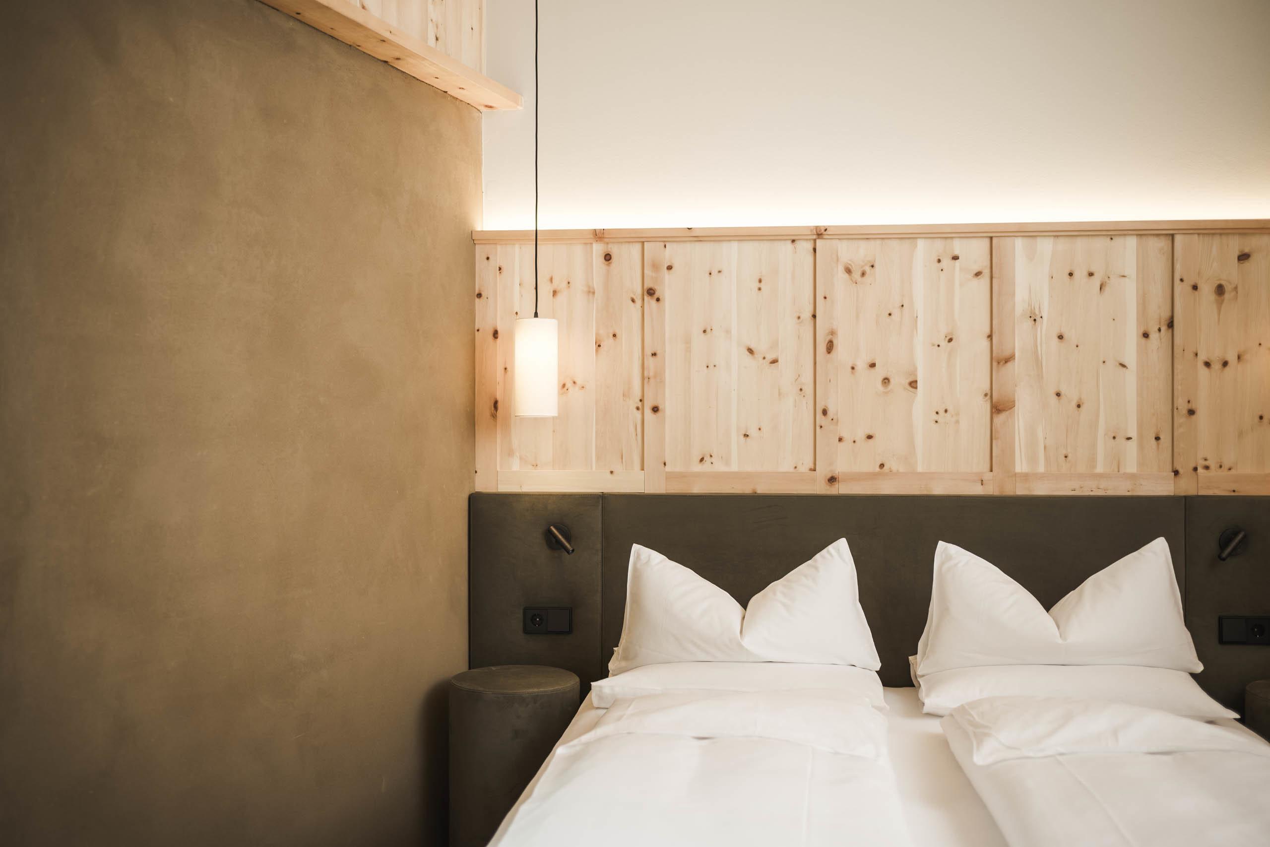 Die Zimmer, Suiten und Apartments im Naturhotel Lüsnerhof sind alpine Schlafjuwele aus puren, ursprünglichen Erdelementen. Hier verfallen Sie in einen tiefen, gesunden Schlaf, um den nächsten Ferientag voller Frische und Lebenslust zu beginnen.