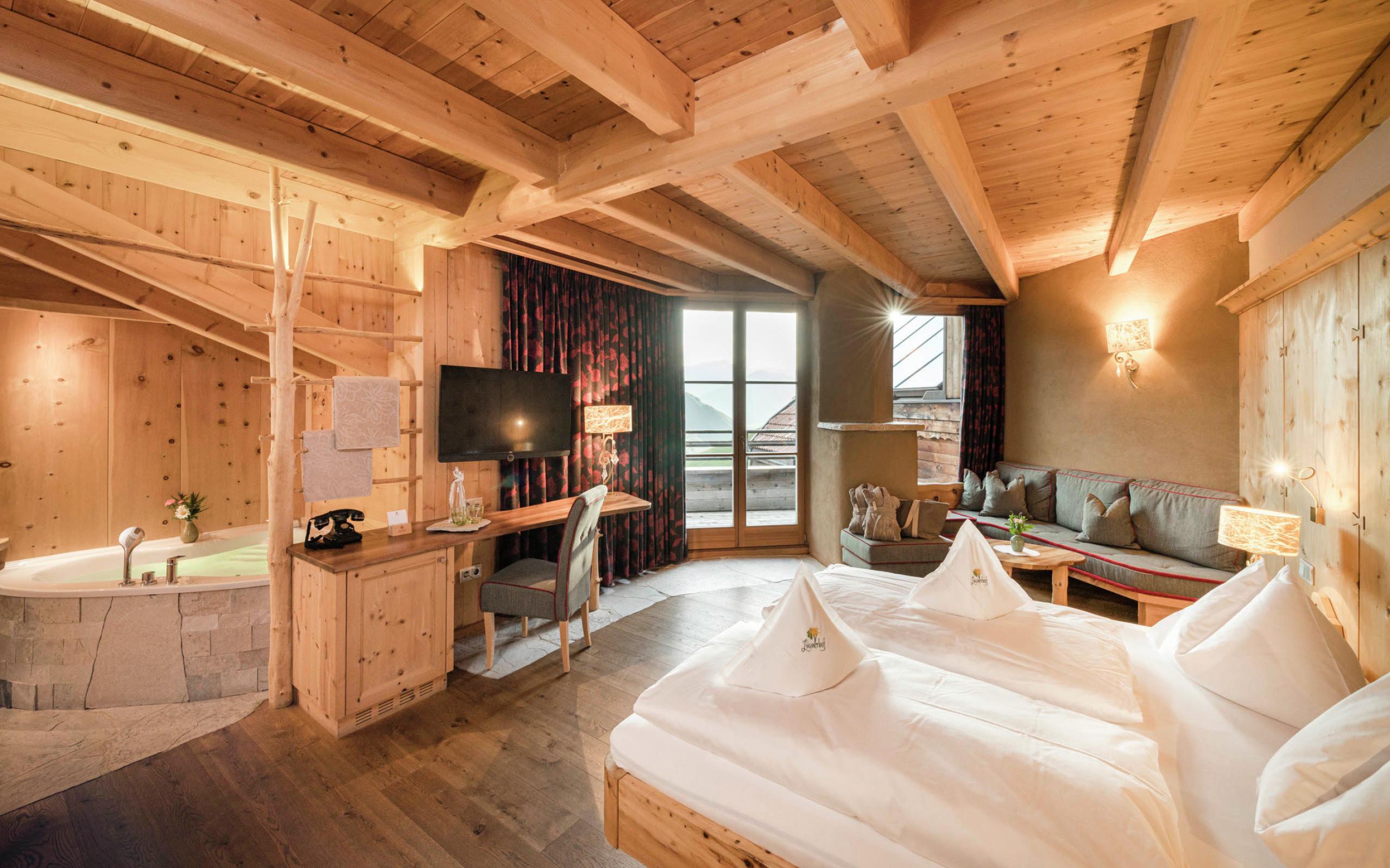 Die Zimmer, Suiten und Apartments im Naturhotel Lüsnerhof sind alpine Schlafjuwele aus puren, ursprünglichen Erdelementen. Hier verfallen Sie in einen tiefen, gesunden Schlaf, um den nächsten Ferientag voller Frische und Lebenslust zu beginnen.