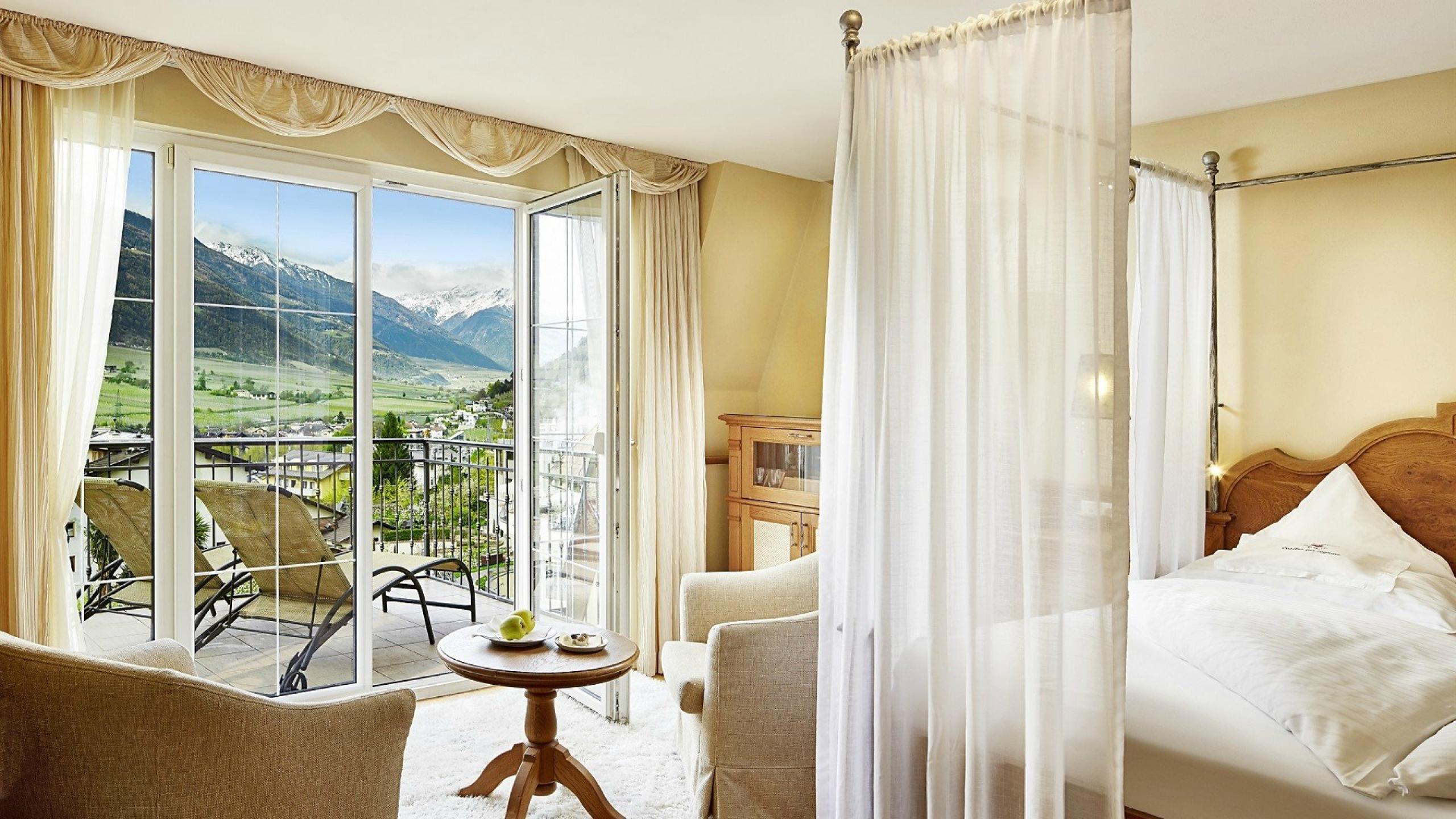Exklusive Wohnwelten mit stilvollem Interior Design, hochwertigem Mobiliar aus heimischem Holz und echter Wohlfühlatmosphäre: Finden Sie Ihr Traumzimmer oder Ihre Wunschsuite für einen luxuriösen Wellnessurlaub in Südtirol.
