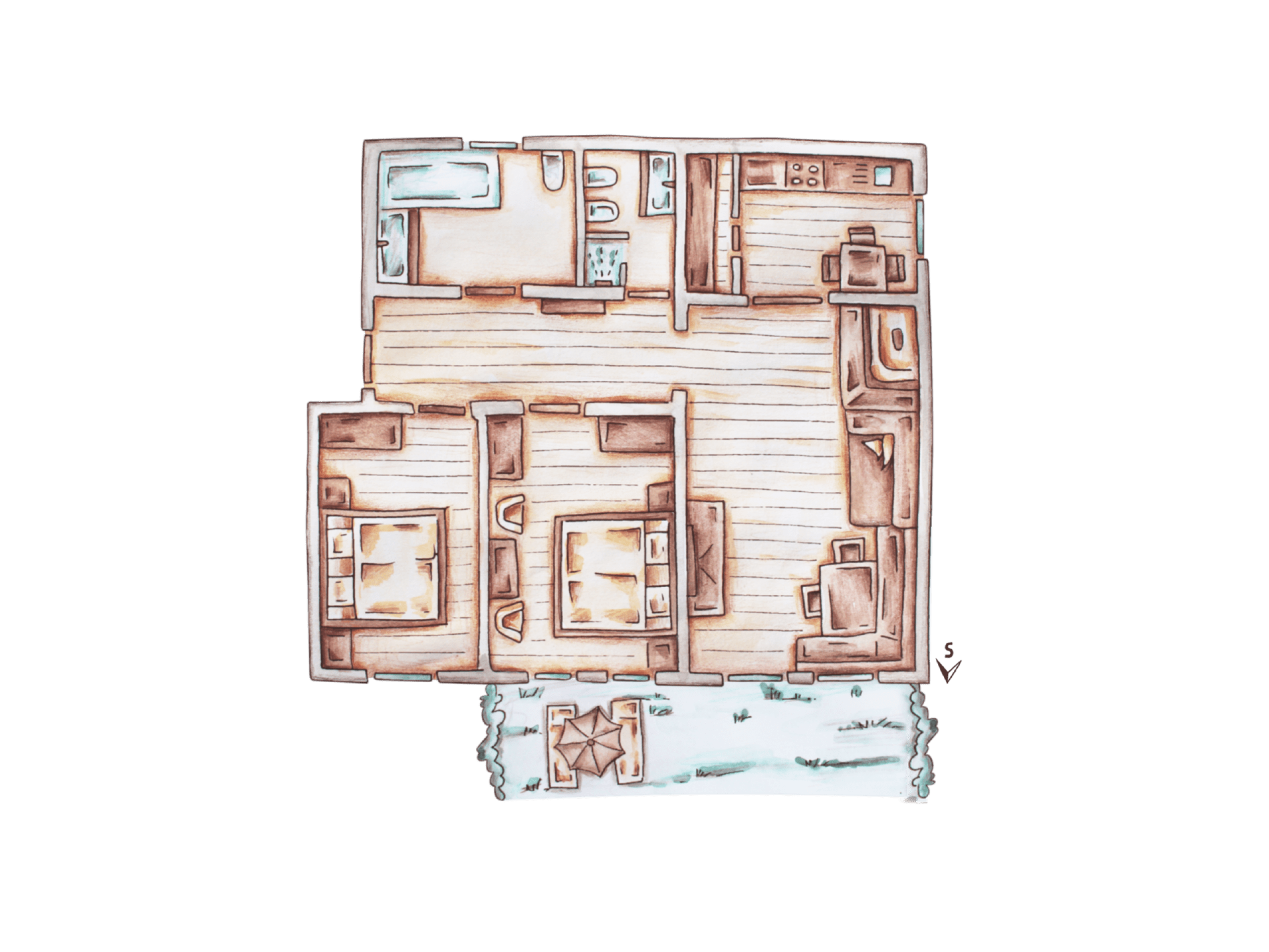 Ca. 76 m² – inklusive 6 m² Vorgarten für 2–6 Personen Großzügiges Apartment mit Dolomitenblick. Zwei separate Schlafzimmer, Bad mit Badewanne und WC, zweites Bad mit Dusche, WC, Bidet. Wohnbereich mit Couchecke, Kachelofen und voll ausgestatteter Kochecke, Hunde und andere Haustiere erlaubt. Zugang zum Hotel über das Freie (ca. 20 m).