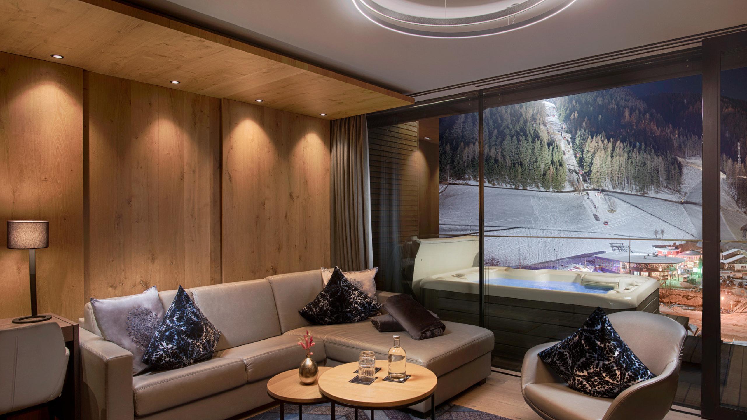 Experience Alpine cosiness in our luxurious rooms and suites, where eco-friendly architecture blends seamlessly with style. Local materials like pine wood, traditional loden fabric, linen, and wooden floors create a warm, inviting ambience, complemented by elegant details and modern design.