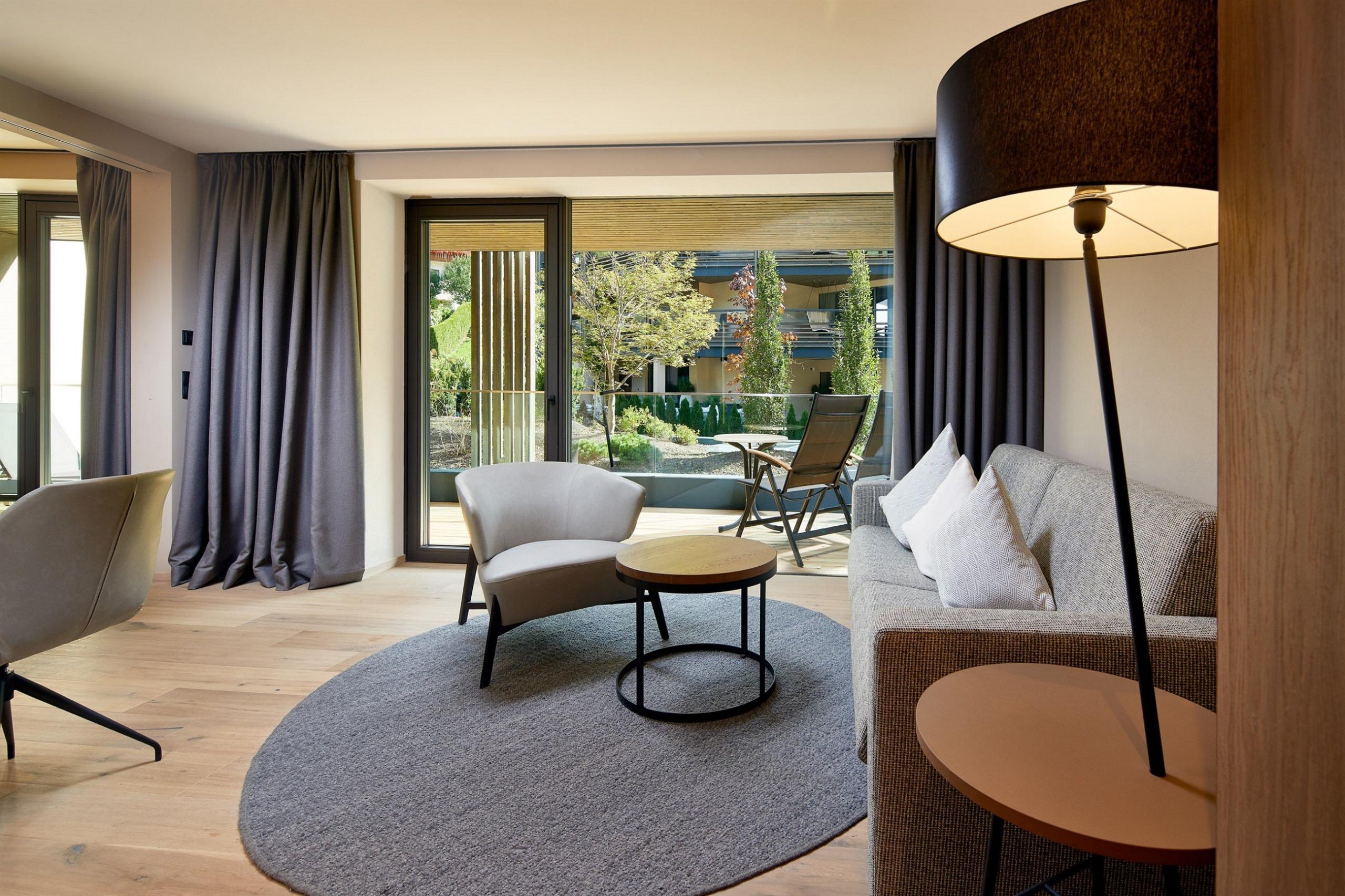 Experience Alpine cosiness in our luxurious rooms and suites, where eco-friendly architecture blends seamlessly with style. Local materials like pine wood, traditional loden fabric, linen, and wooden floors create a warm, inviting ambience, complemented by elegant details and modern design.