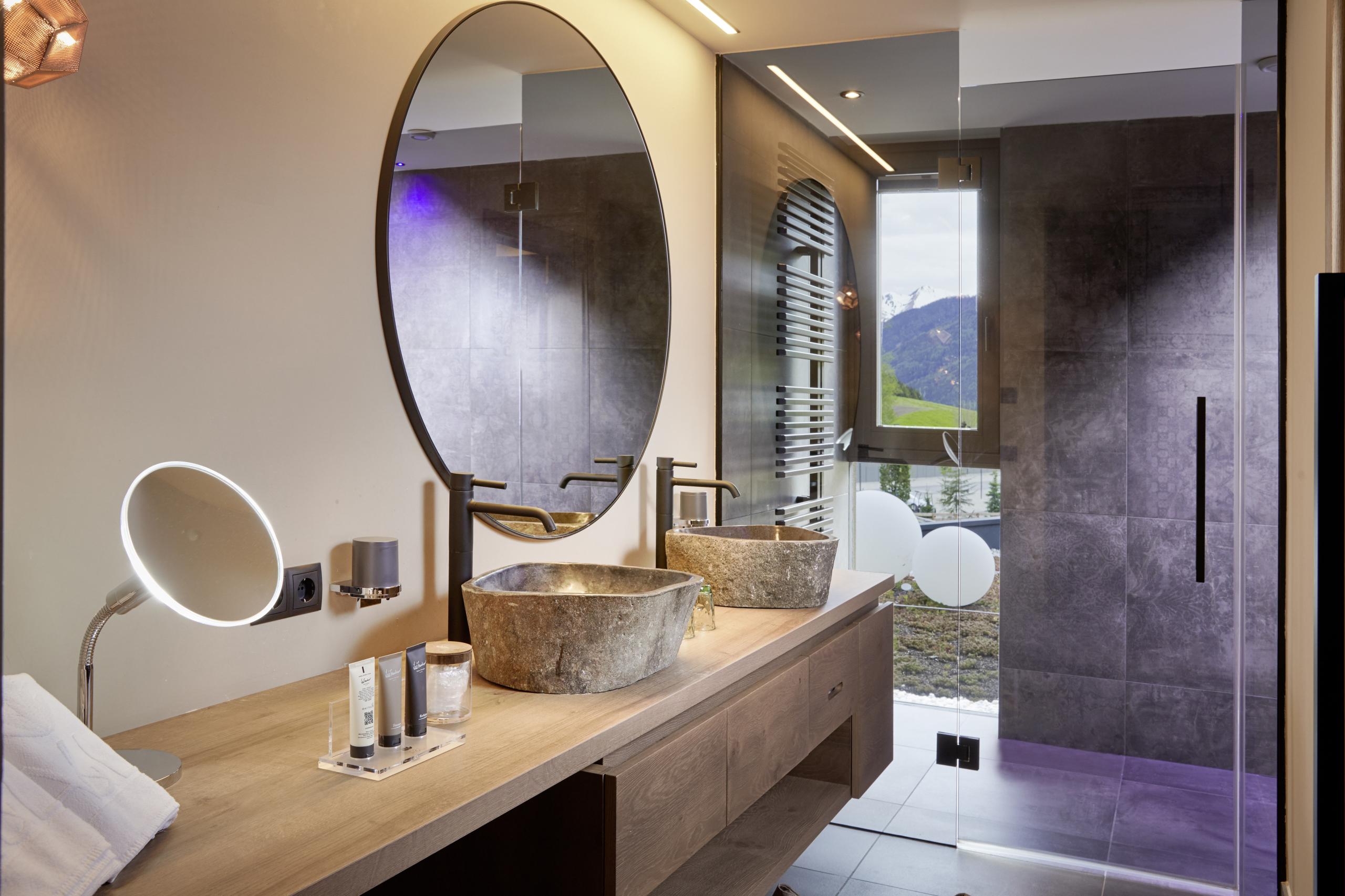 Experience Alpine cosiness in our luxurious rooms and suites, where eco-friendly architecture blends seamlessly with style. Local materials like pine wood, traditional loden fabric, linen, and wooden floors create a warm, inviting ambience, complemented by elegant details and modern design.