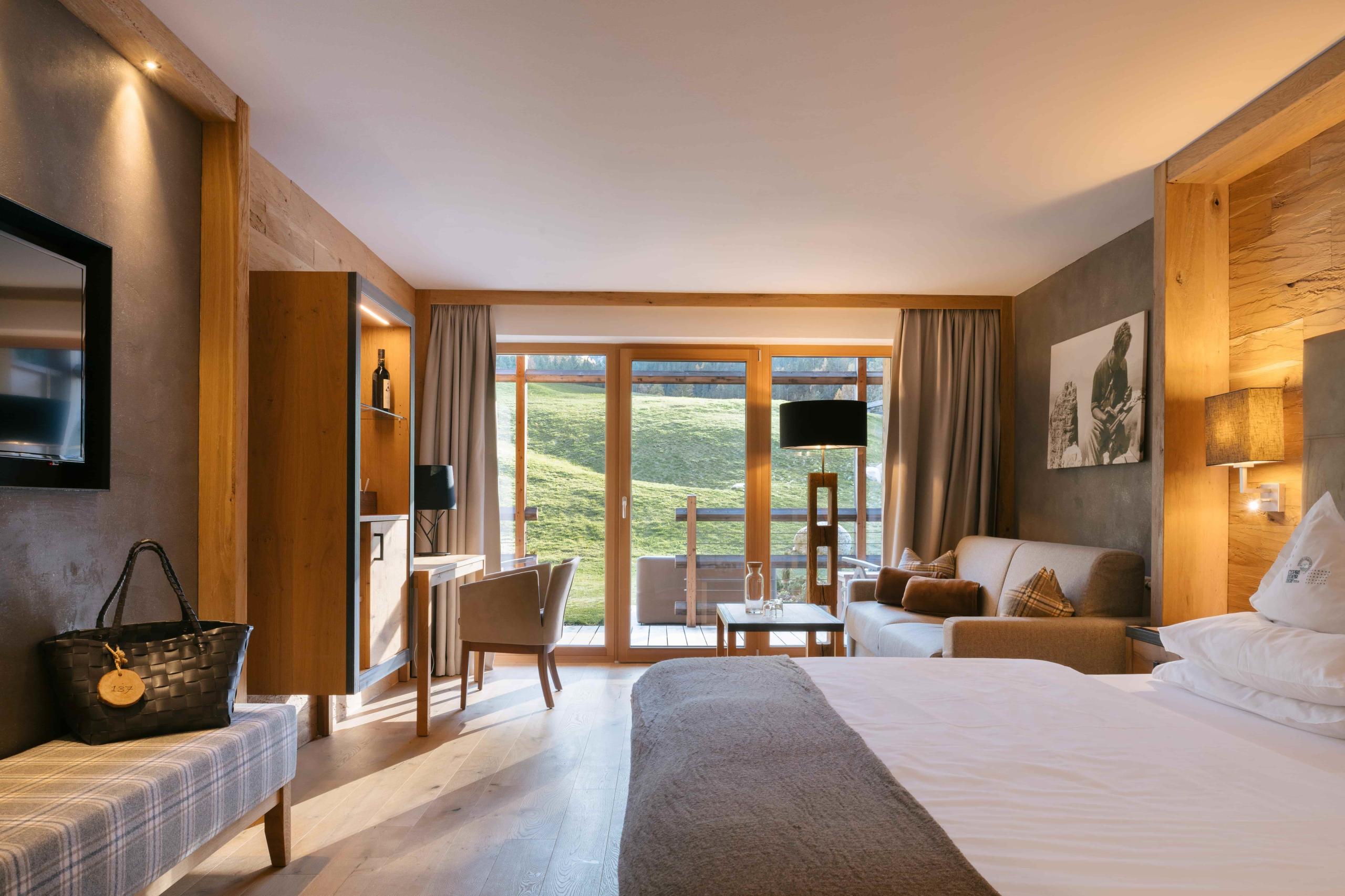 Fresh mountain air and the calming scent of Swiss stone pine ensure a deep, restful sleep: Our rooms and suites offer you the perfect vantage point in the Dolomites.