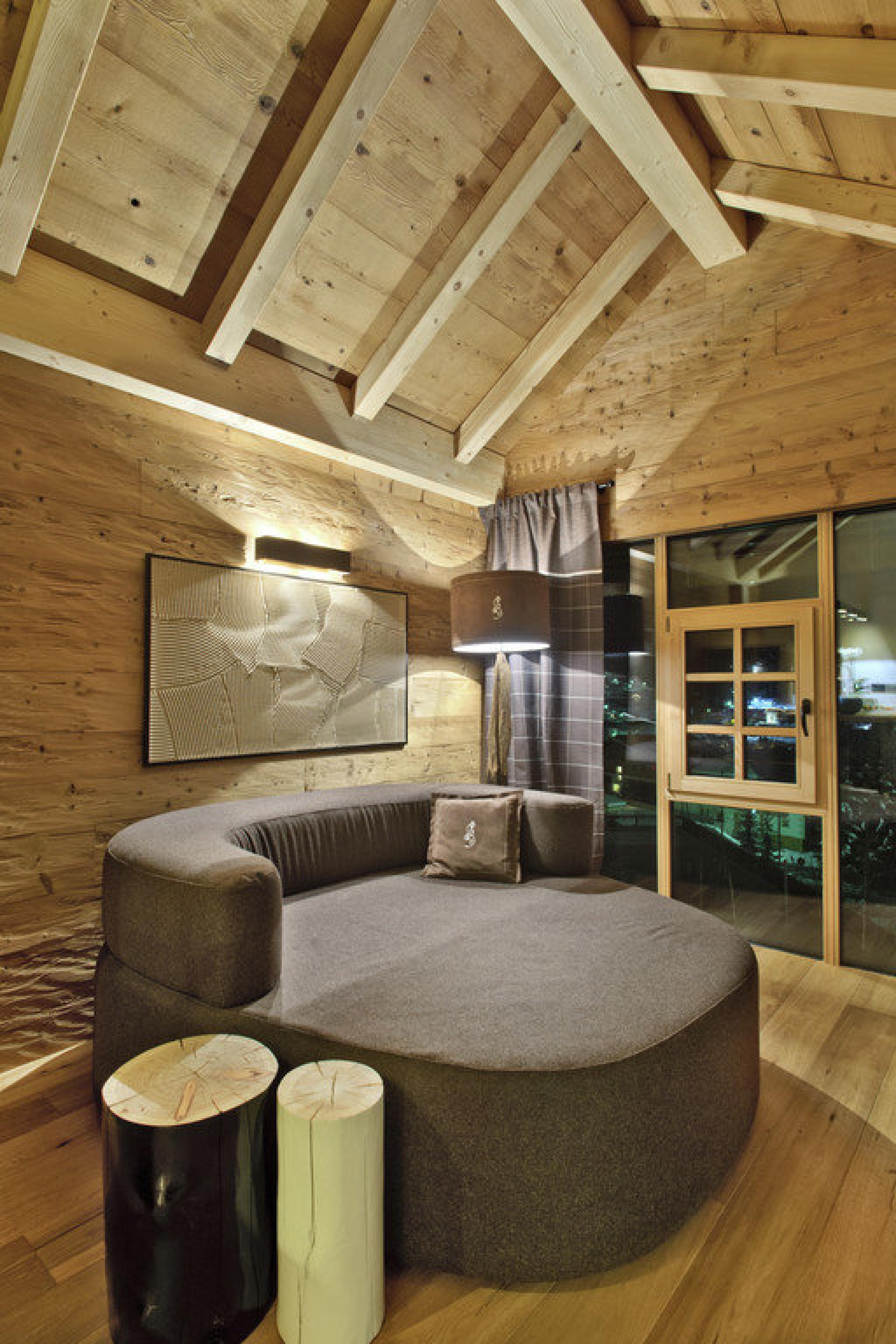 1 Chalet “Cil” of ca. 50 m² with external access, living room corner, Ladinian wooden floor, with bathtub and shower, separated Lasa marble bathing facilities, walk-in closet, flat TV, safe, minibar and panorama-terrace with San Cassiano view.