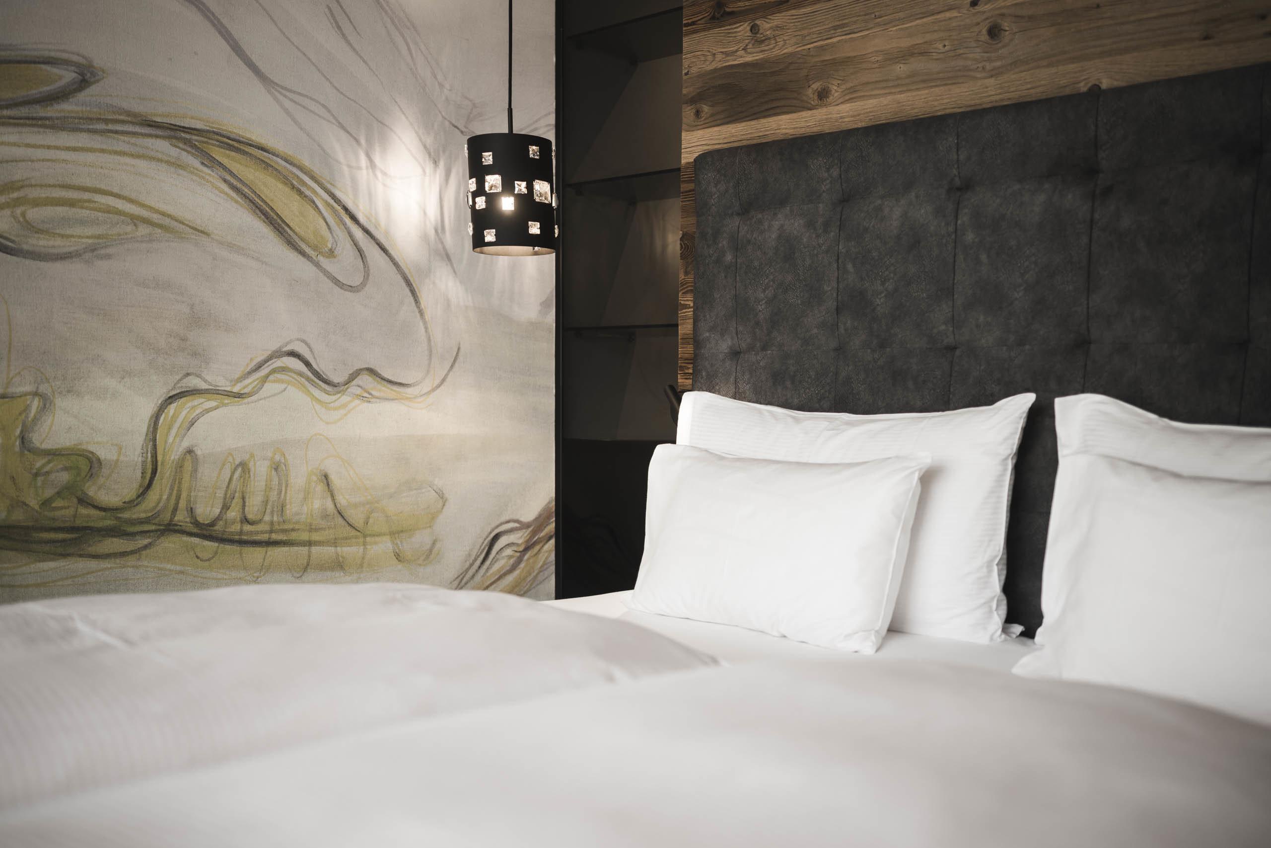 In our rooms and suites, the majesty of the mountains meets modern luxury. Enjoy an elegant yet cosy atmosphere inspired by local stone, warm woods, the soothing scent of alpine herbs, and exquisite Italian design.