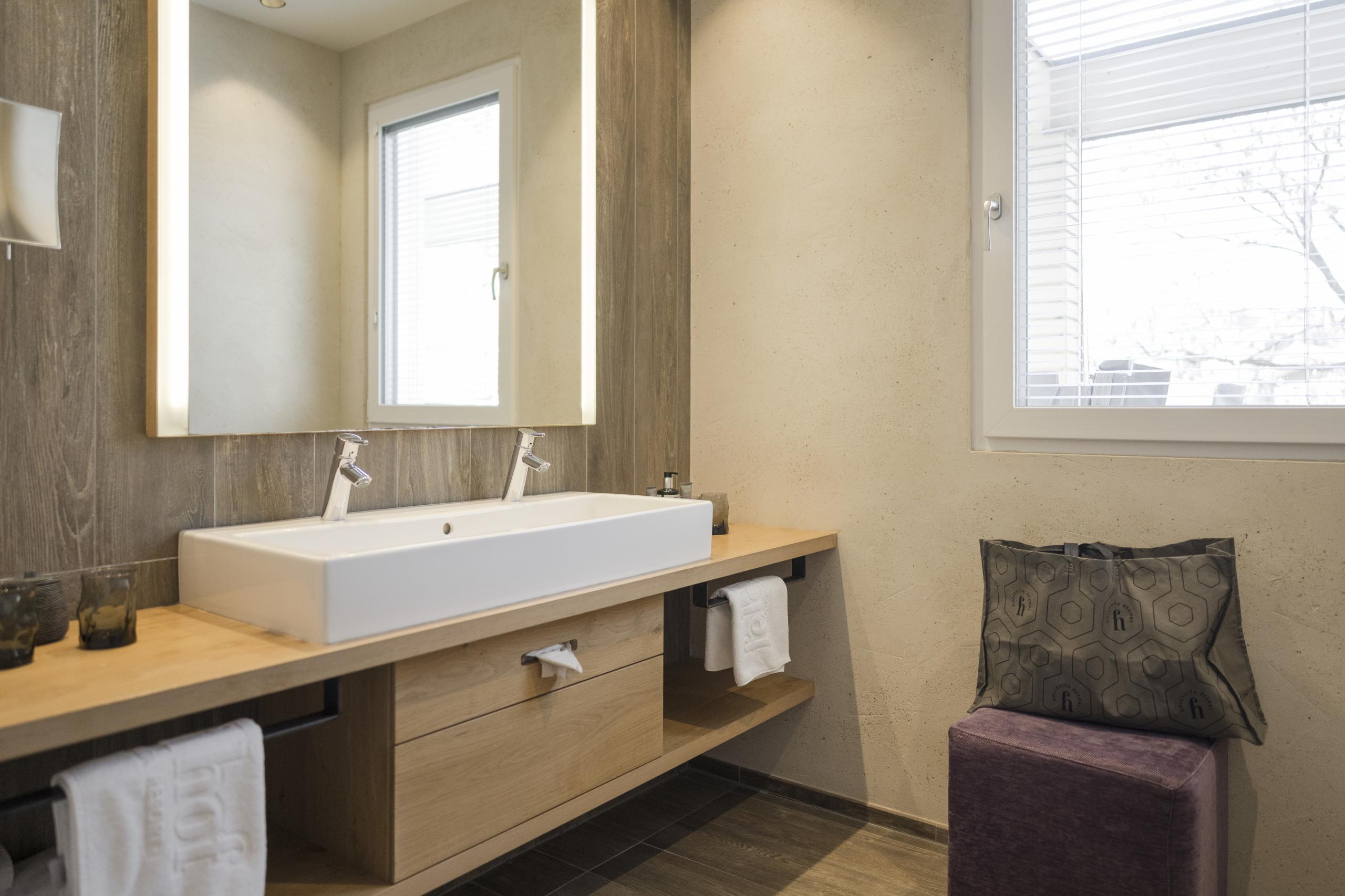 47 m² - This suite makes your time out a time of joy for the whole family. With an exclusive appointed living room with comfortable seating corner, wooden floor, natural wood furniture, separate children's room with two single beds, modern bathroom with large walk-in shower, double basin, separate toilet, minibar, safe, 2 flat screen TV, telephone, free WiFi, large west-facing balcony with whirlpool and daybed, a garage parking space and air conditioning.