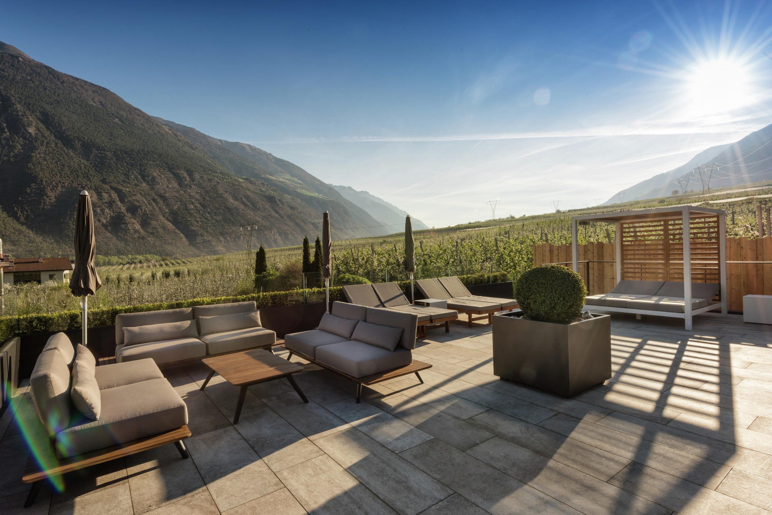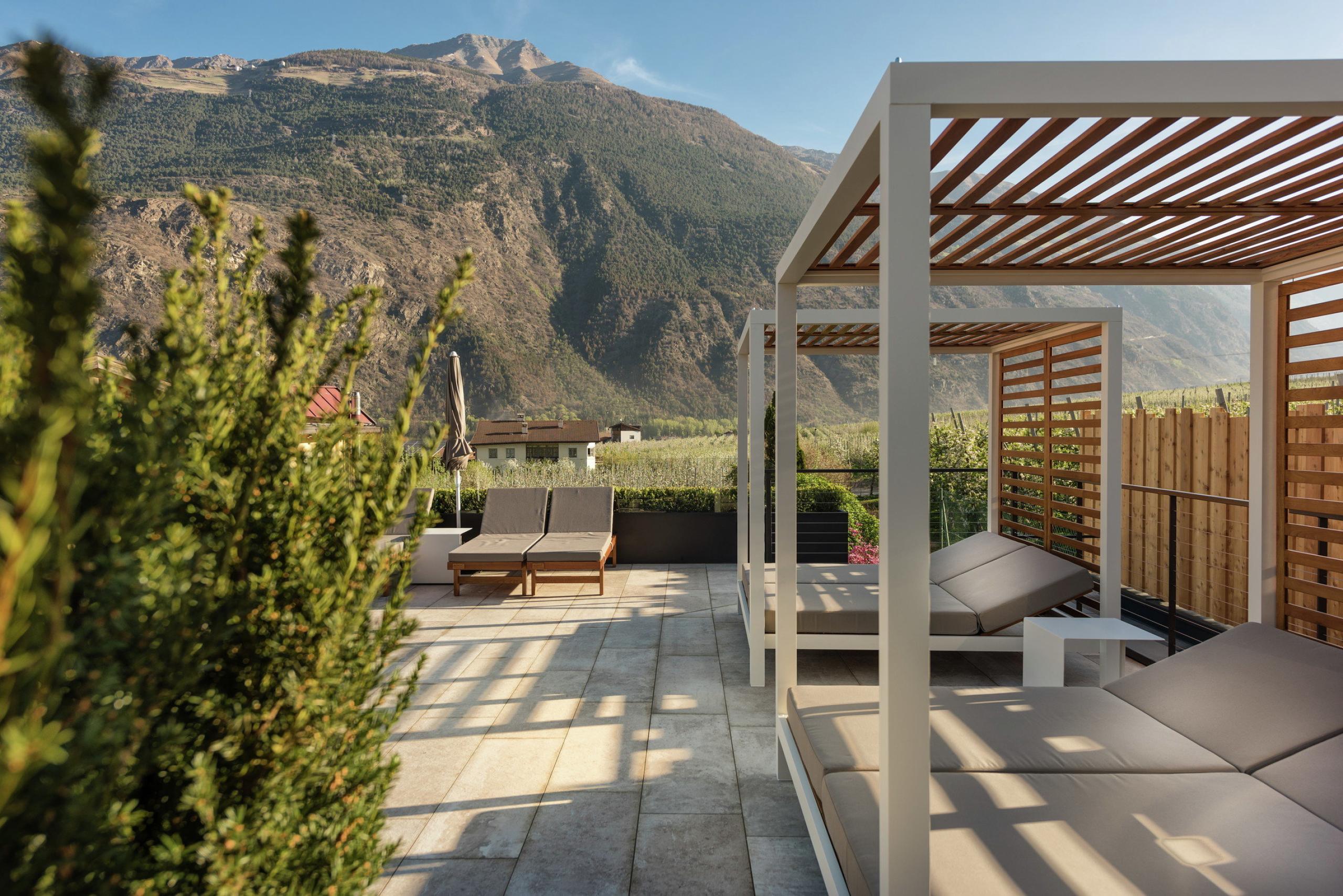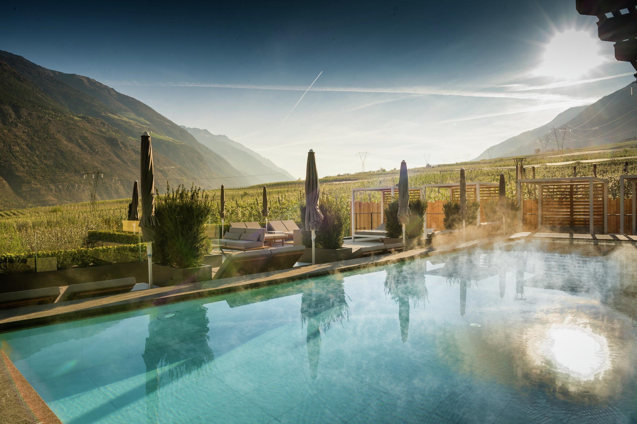 Your 5-star hotel in Latsch lies bathed in sunshine in the heart of Val Venosta/Vinschgau, surrounded by orchards and the imposing peaks of the Stelvio National Park. Latsch is one of the sunniest places in all of South Tyrol and, in every season, the ideal starting point for unforgettable holiday experiences: Countless hiking trails and varied mountain bike trails invite you to explore nature while being active. At Das Paradies, connoisseurs and adventure lovers, families and couples alike will find their perfect place to retreat and recharge. Here, Alpine luxury, a welcoming atmosphere, and heartfelt hospitality blend into a truly unique experience.