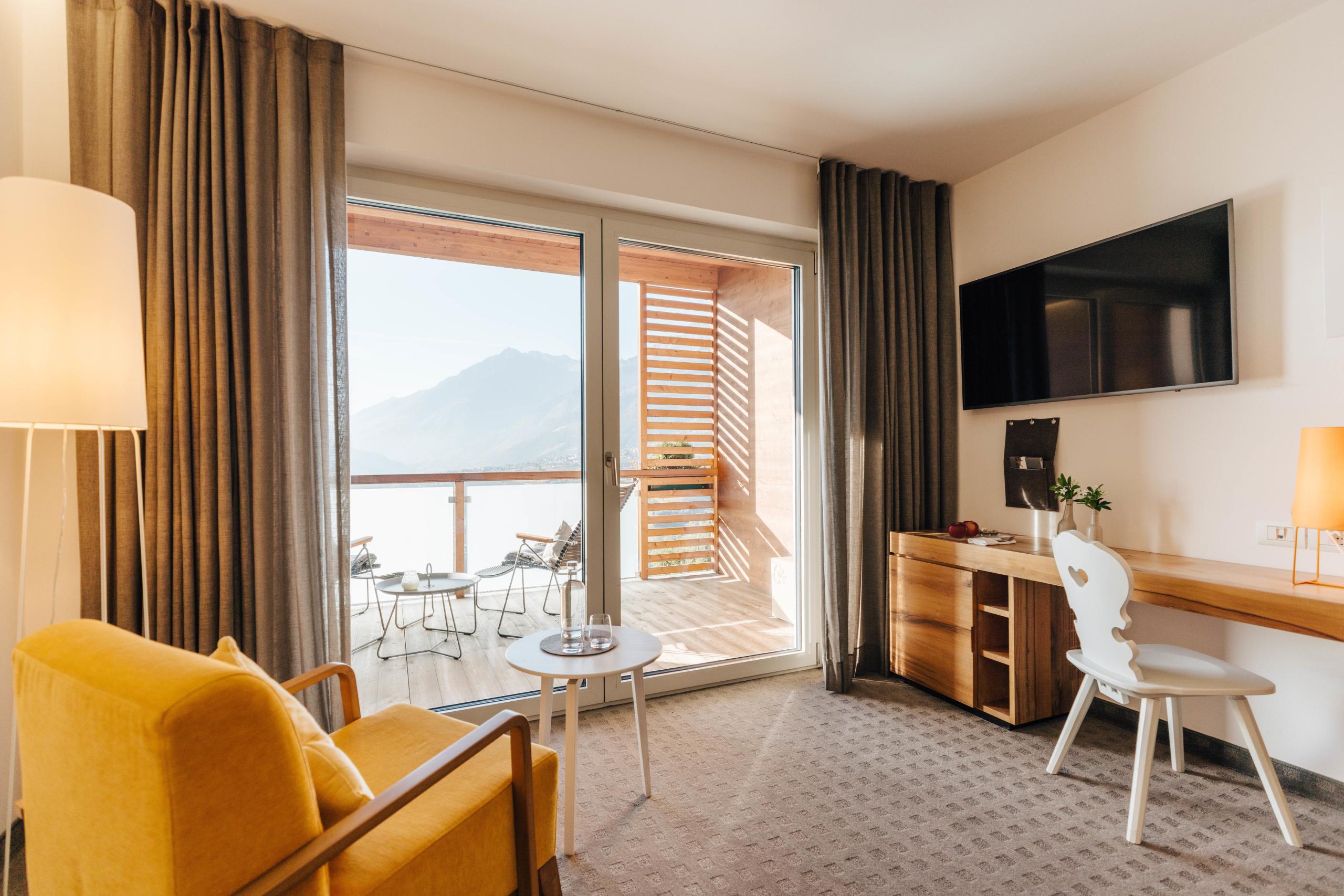 Sanctuaries of well-being in a modern Alpine style, with fine furnishings crafted from local woods, harmonious colours, and unparalleled views of the gardens and mountains. Discover your perfect retreat.