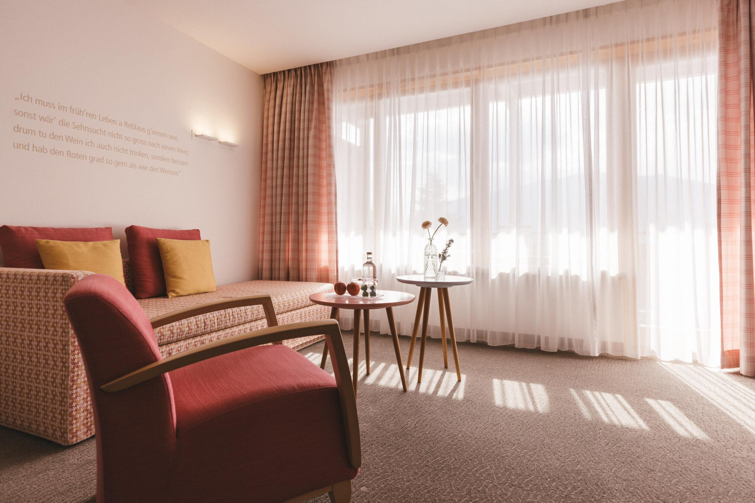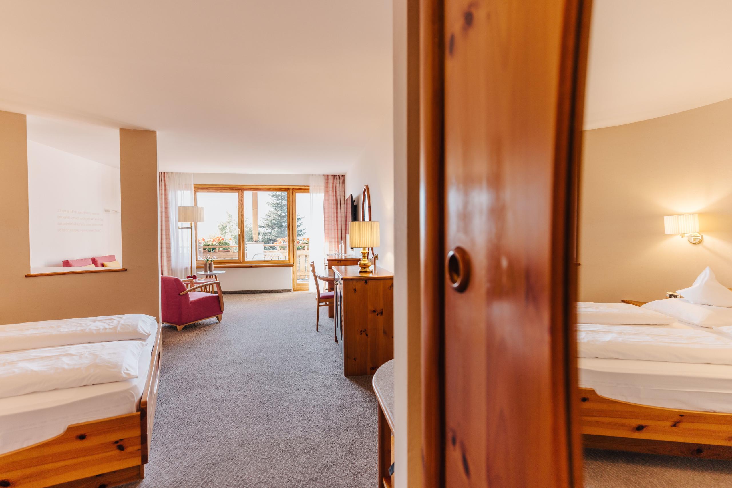 Sanctuaries of well-being in a modern Alpine style, with fine furnishings crafted from local woods, harmonious colours, and unparalleled views of the gardens and mountains. Discover your perfect retreat.