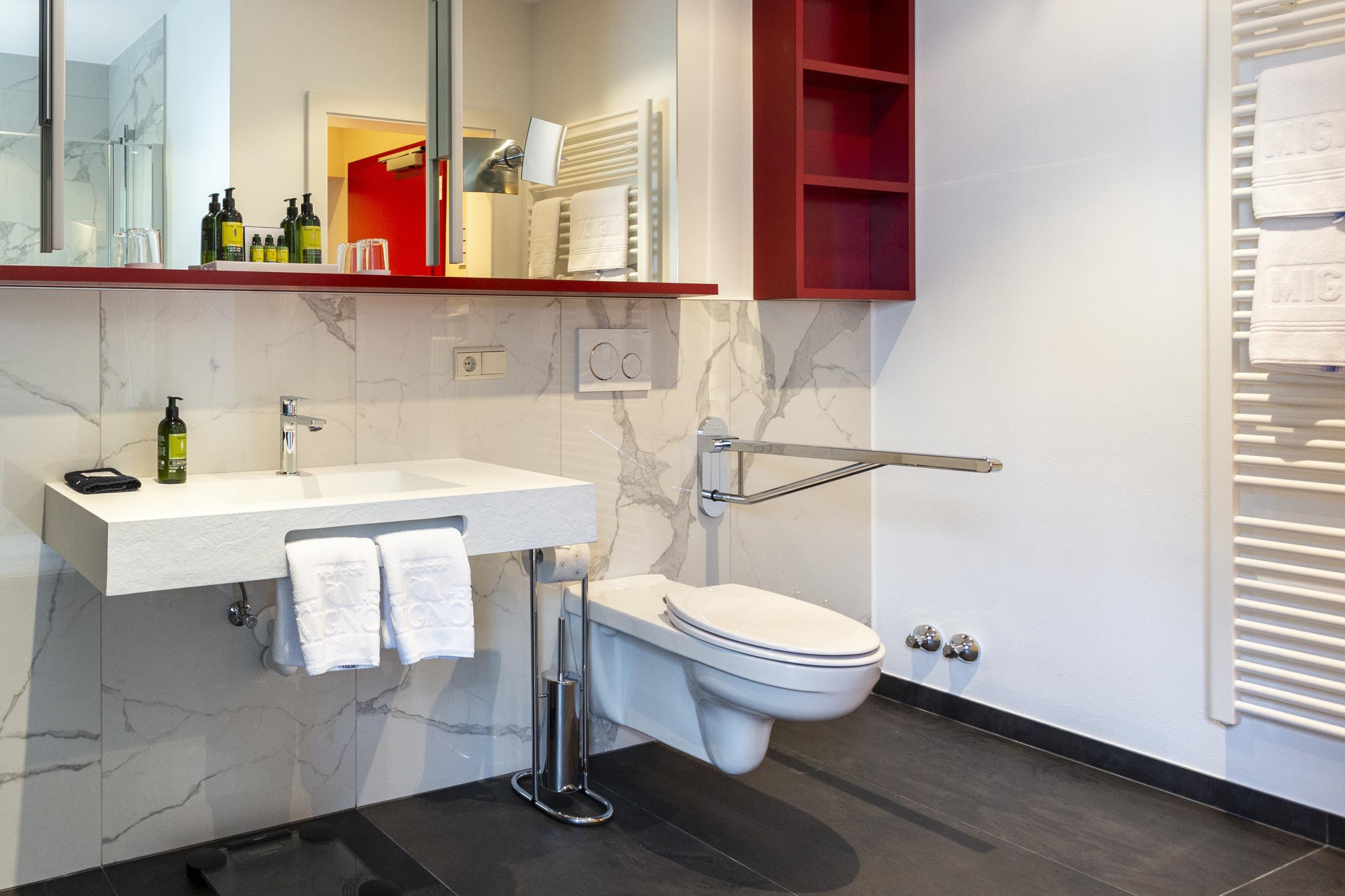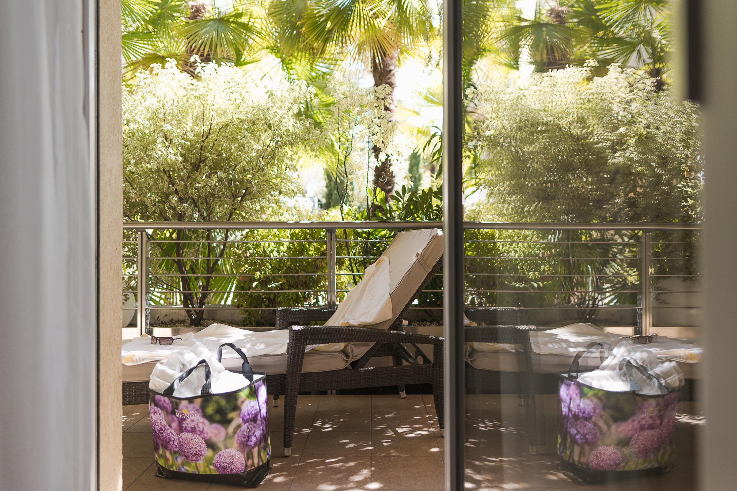 King-size bed with memory foam mattress | separate living room | balcony | wooden floors | shower | bidet | hairdryer | makeup mirror | exclusive L'Occitane bath products | flat-screen TV | WiFi | phone | radio | AC| in-room safe | kettle with tea selection | Nespresso machine | minibar | hiking backpack | South Tyrolean apples as a welcome gift | fresh flowers from our garden | Loacker treats