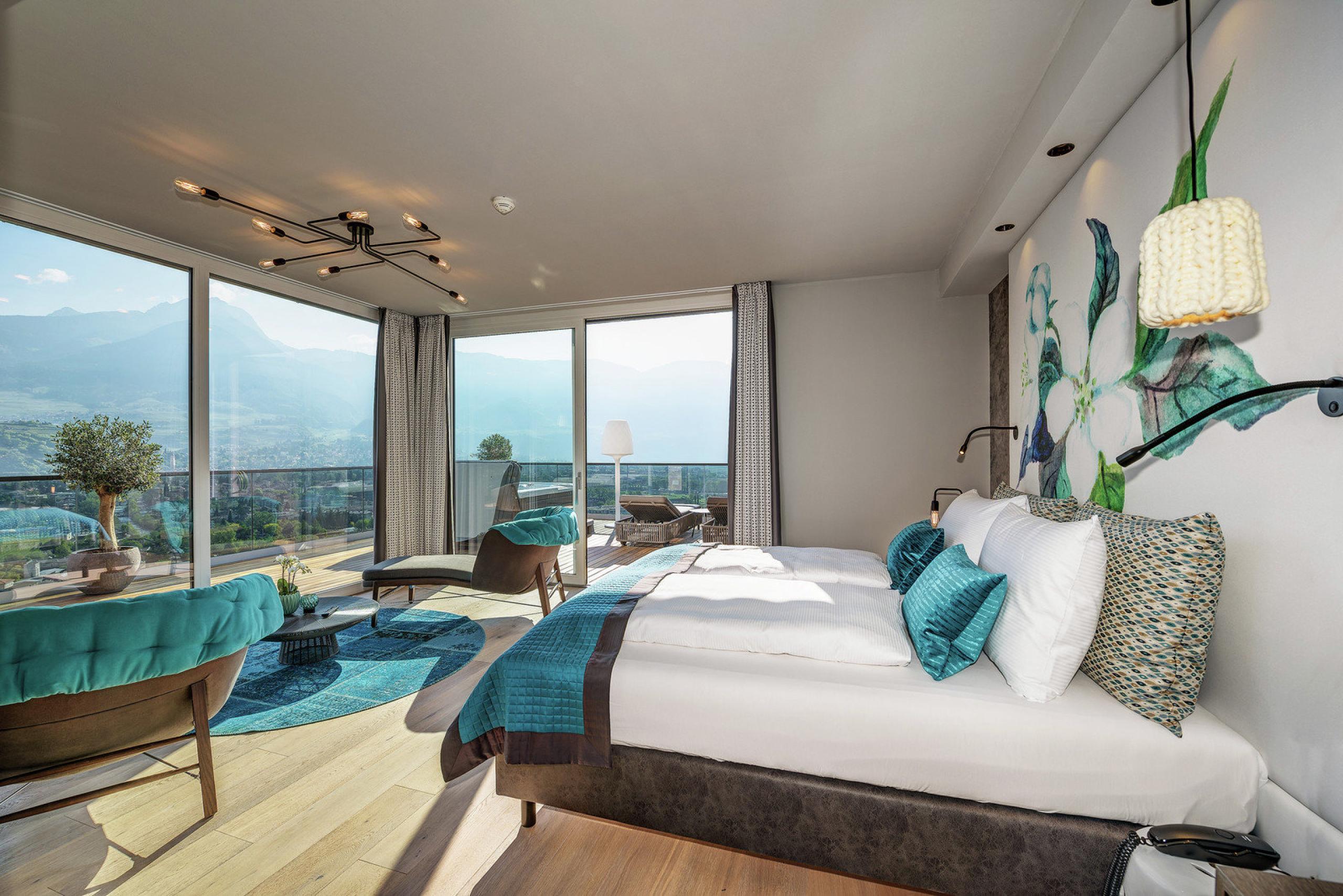 Stylish and comfortable rooms and suites for that perfect “feeling at home” vibe: Find your favourite spot above the rooftops of Merano.