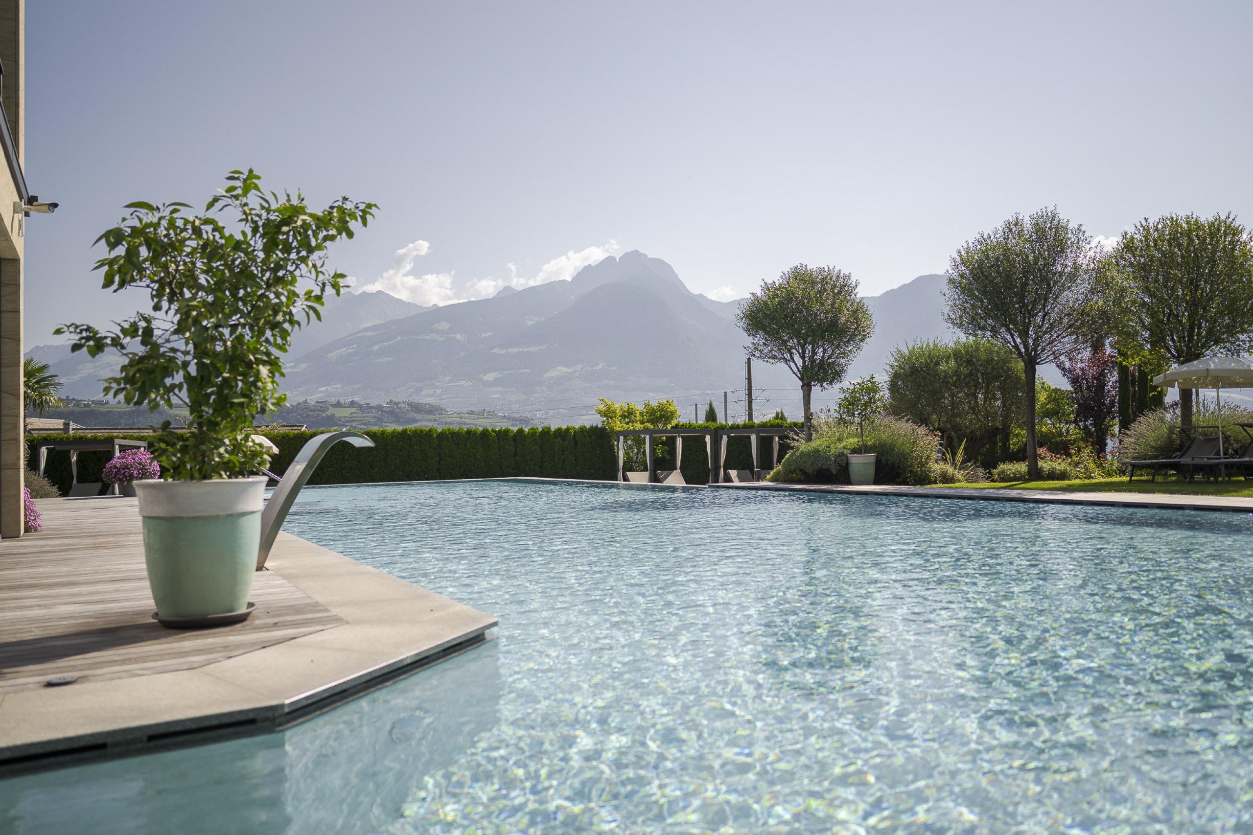 At La Maiena Meran Resort, nature lovers and foodies feel right at home. Marling is situated above the Val Venosta/Etschtal valley at about 360 metres above sea level, offering the ideal starting point for hikes and leisurely strolls. The village of Marling is known for its particularly mild climate and an abundance of orchards and vineyards. Best of all: The spa town of Merano is located at only 3 kilometres from the hotel.