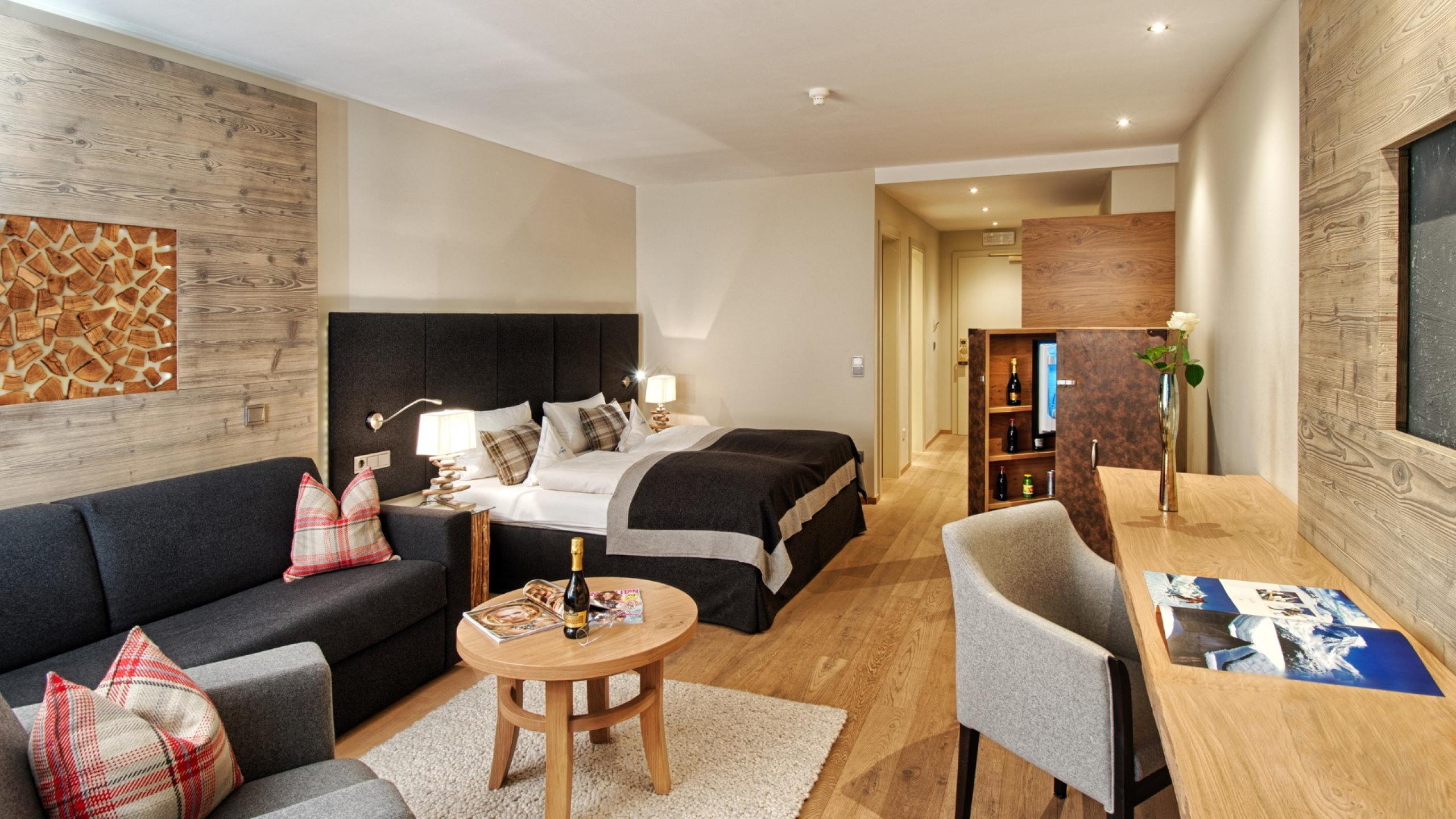 Experience Alpine cosiness in our luxurious rooms and suites, where eco-friendly architecture blends seamlessly with style. Local materials like pine wood, traditional loden fabric, linen, and wooden floors create a warm, inviting ambience, complemented by elegant details and modern design.