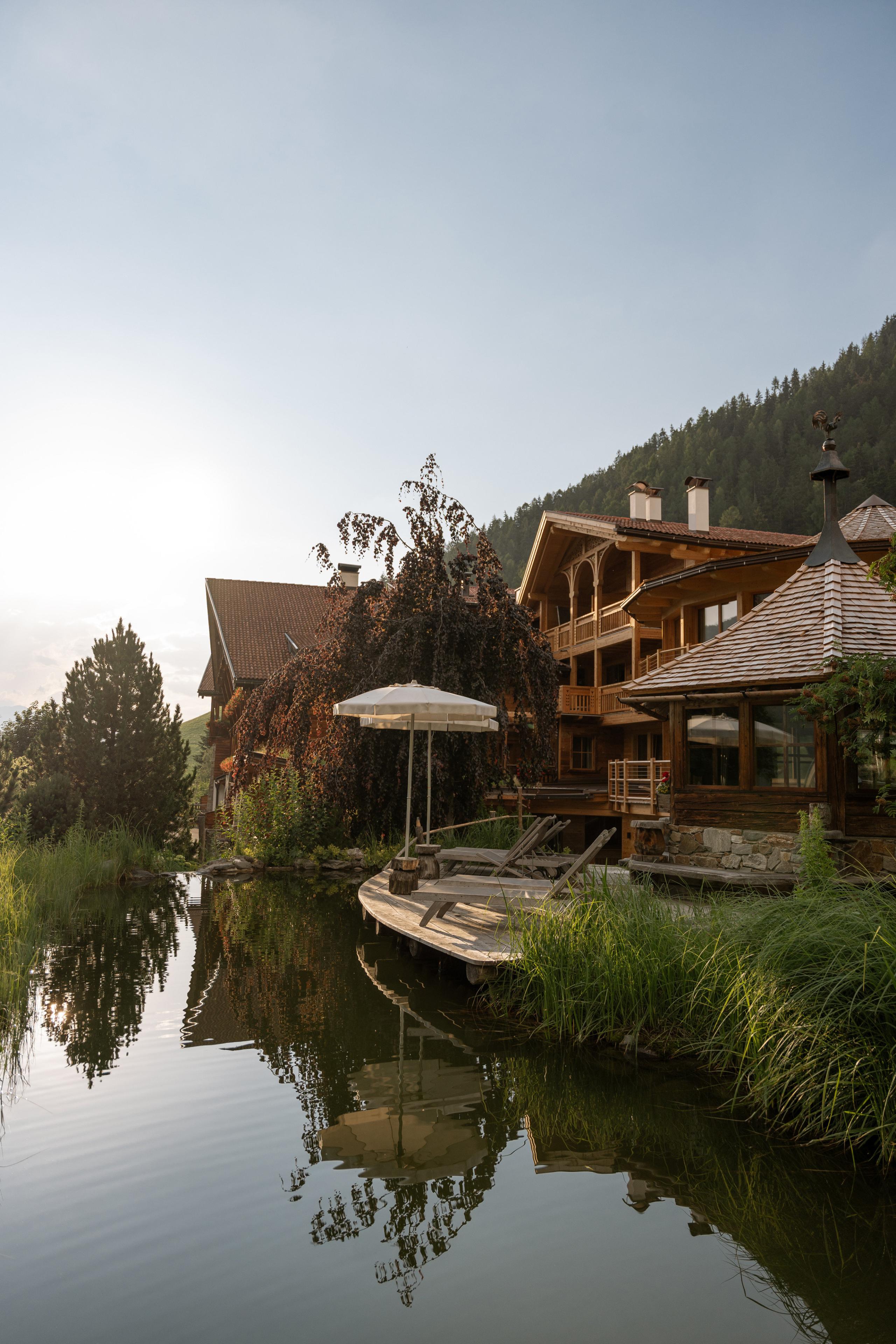 This wellness and hiking hotel offers its guests a unique way to “reconnect with nature”. Spacious, stylish, and cosy – the Lüsnerhof is nestled in pristine nature at 1,100m above sea level in the idyllic village of Lüsen in Valle Isarco/Eisacktal. This extraordinary nature hotel, built using sustainable bio-construction, provides a special sense of well-being through the four Alpine elements of earth, water, air, and fire.