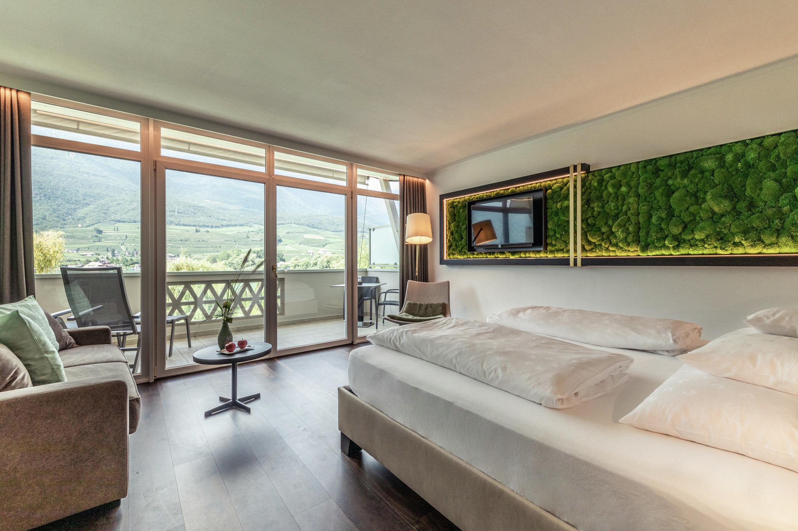 Luxury and ease await you in our elegant rooms and suites right by Lake Caldaro/Kalterer See, offering a stylish, relaxed stay with stunning lake views.