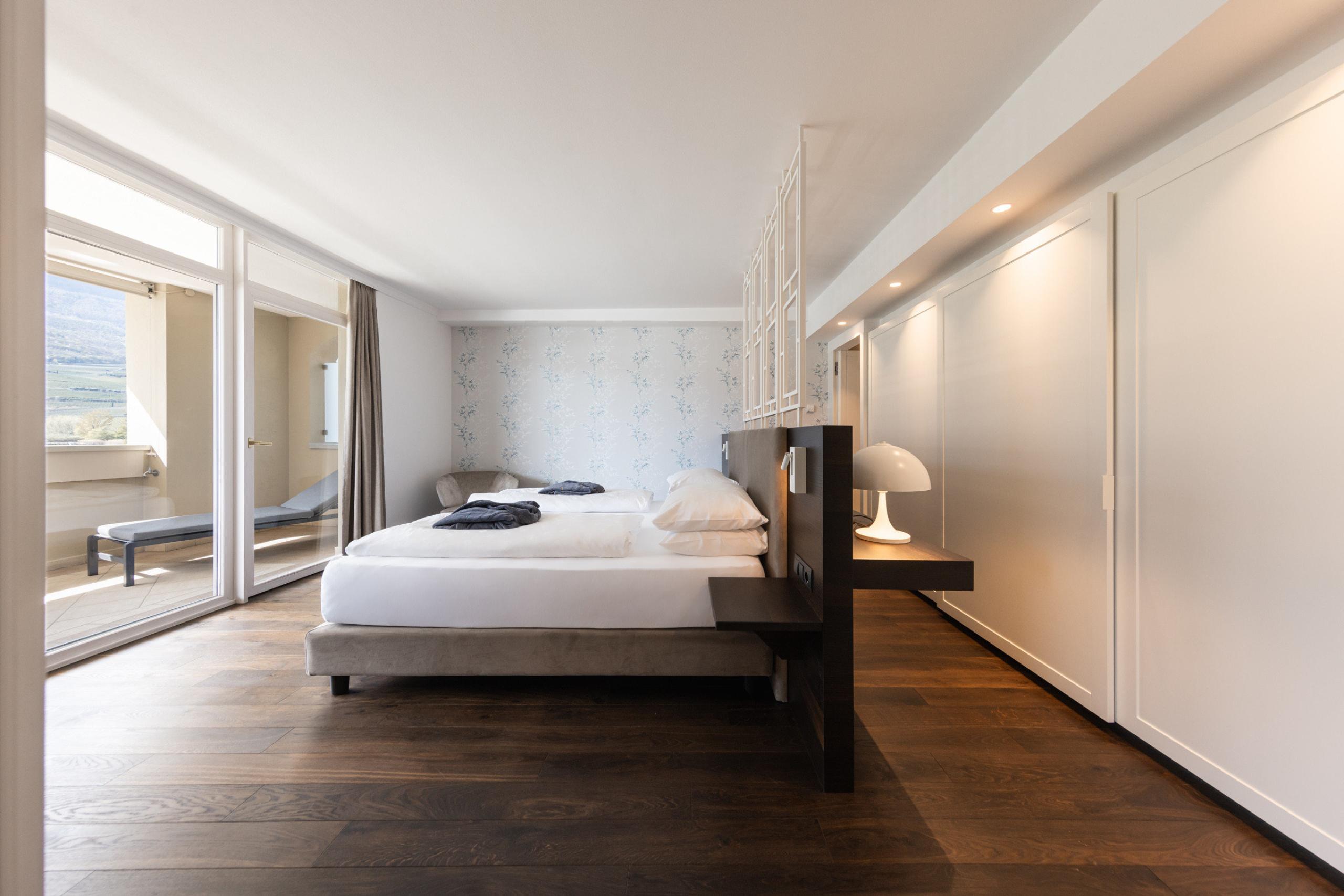 Luxury and ease await you in our elegant rooms and suites right by Lake Caldaro/Kalterer See, offering a stylish, relaxed stay with stunning lake views.