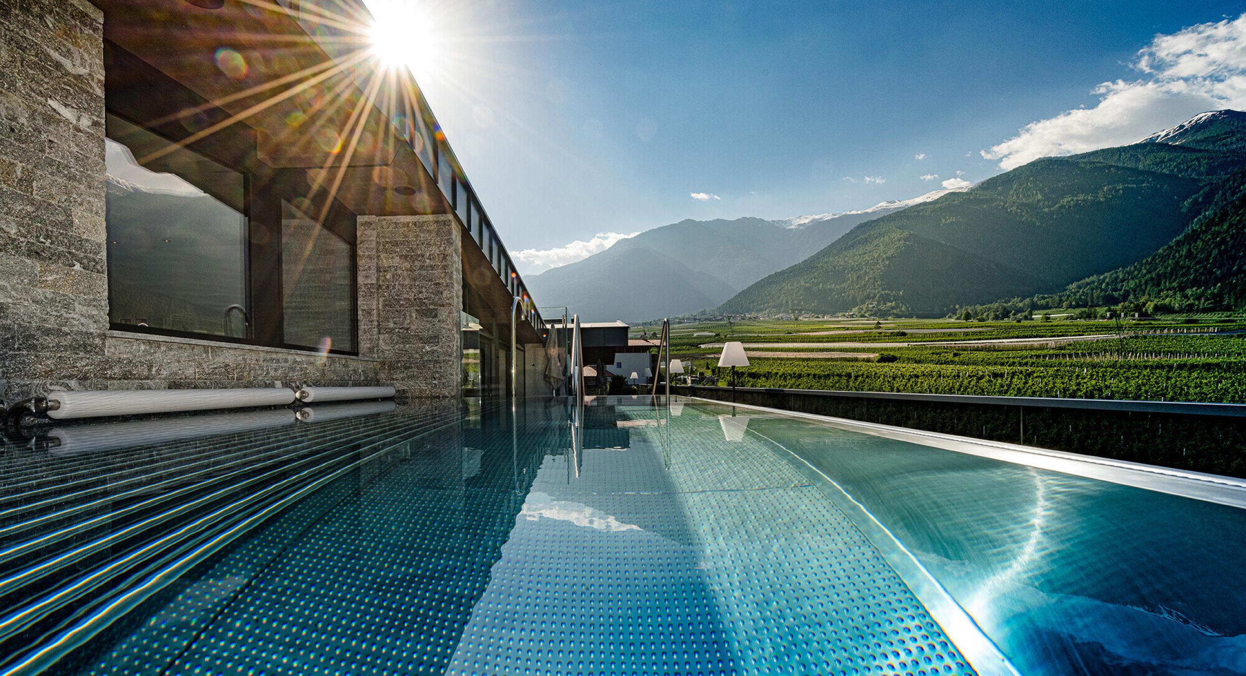 Your wellness and adventure hotel in Latsch is situated at the entrance to the Val Martello/Martelltal valley in Val Venosta/Vinschgau, at the foot of the Passo dello Stelvio/Stilfserjoch National Park. This region is one of the most popular biking and hiking regions in South Tyrol. From scenic Waalweg trails, themed paths and panoramic circular hikes to climbing or high-altitude tours and bike paths and trails, active guests will find everything their hearts desire. Afterward, well-deserved relaxation for body and mind awaits at Piris’ Jagdhof in Latsch.