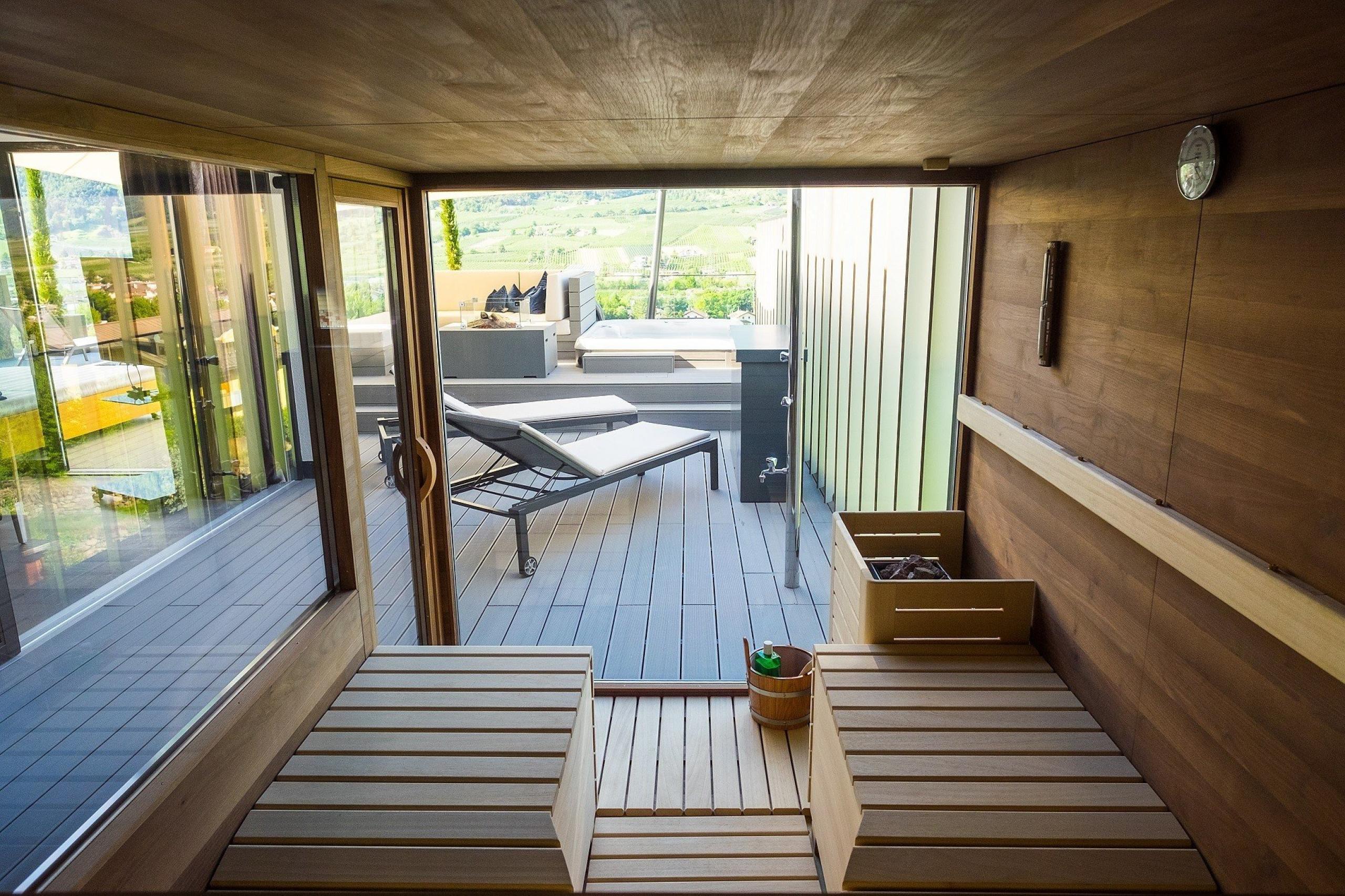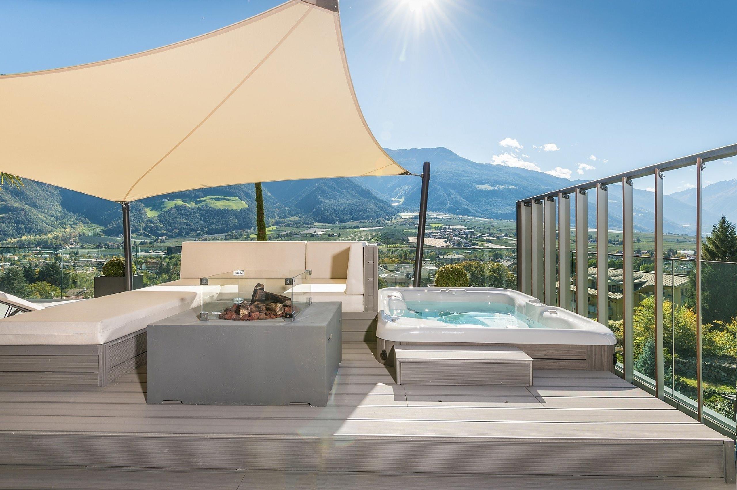 251m² including 126m² outdoor penthouse terrace with panoramic view, whirlpool, private butler service, 2 fully equipped separate bedrooms with luxury box-spring beds (king size 200x210cm) with Sleep-Fit-Health-System, walk-in luxury cabinet area / comfort professional cabinet system, one bedroom with award-winning “Sleep Well system” and mobile bed "Sleep Outdoor", spacious, noble living-lounge with premium equipment: landscaped interior, romantic fire, designer dining table, professional wine storage cabinet, designer bar with Nespresso & tea desk, 55" Smart-TV with Google Chromecast, dolby-surround music & home cinema, luxury designer bathroom, accessible from both bedrooms, with noble bath for two, multi-sensory shower for two , lady's beauty desk, separate washbasin for him & her, fitness lounge with 2 cardio machines and yoga corner, outdoor penthouse terrace in a private setting with private pool - heated year-round, Finnish exterior sauna with multi-sensory shower for two & day bed for two, whirlpool de luxe with hygienic-luxury-system, "Sky Star" fireplace with cosy lounge, outdoor cinema, elegant outdoor furnishings with dining table, deck chairs, radiant warmers, aromatic herbs and lantern, no animals. In our DolceVita Lodge.