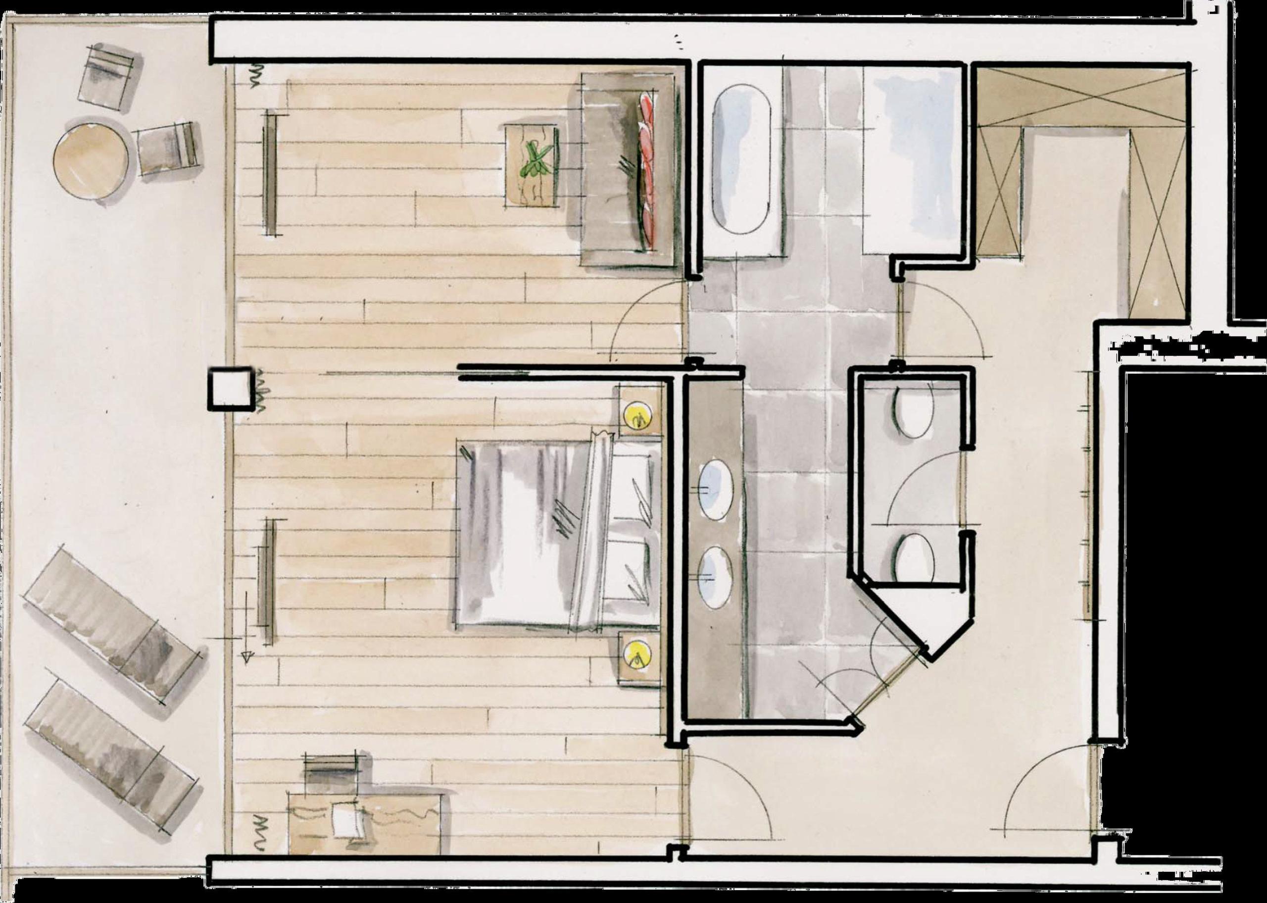 Our rooms and suites are sanctuaries of comfort, crafted with natural materials and minimalist design – perfect for your serene escape at Spa & Relax Hotel Erika.