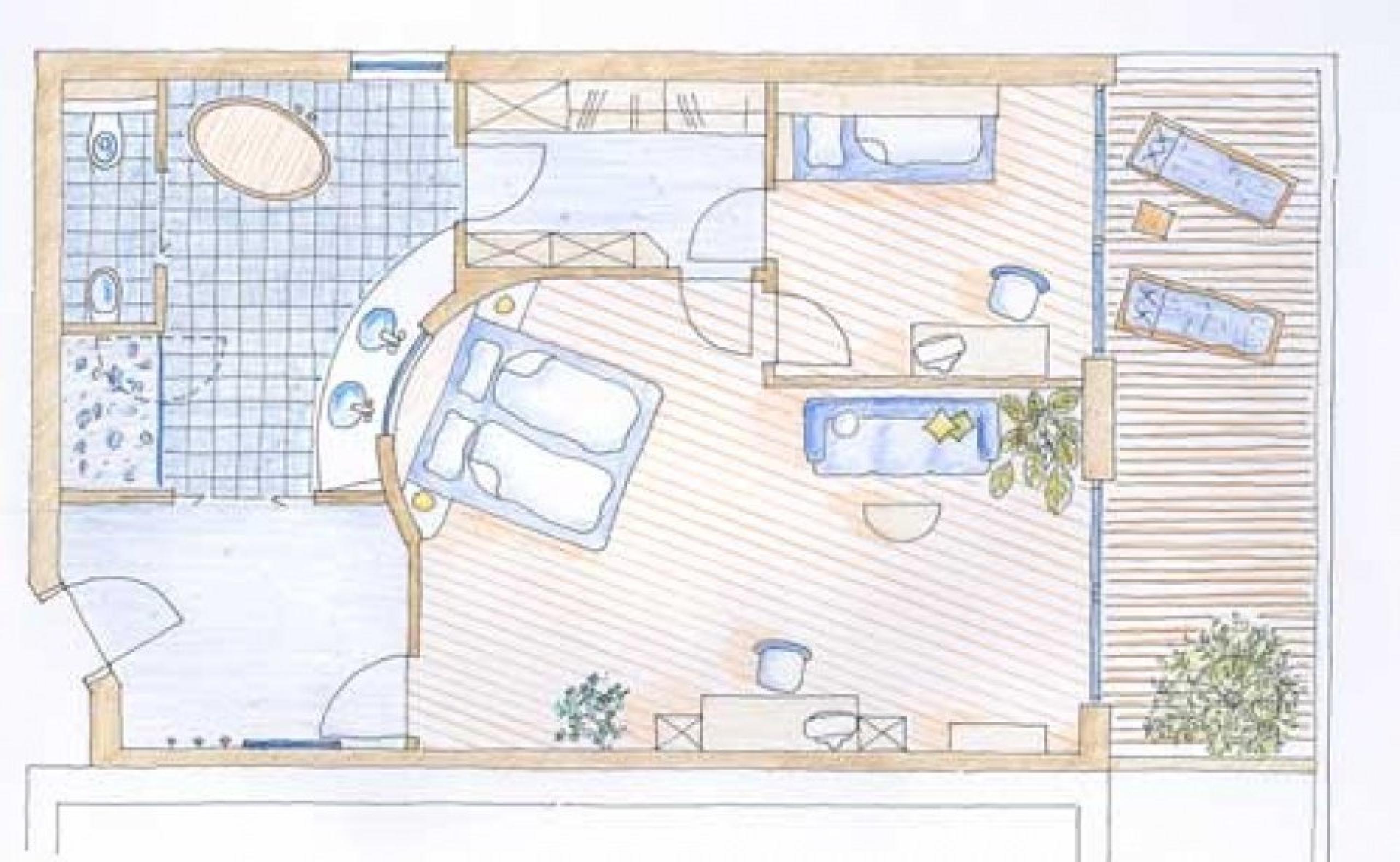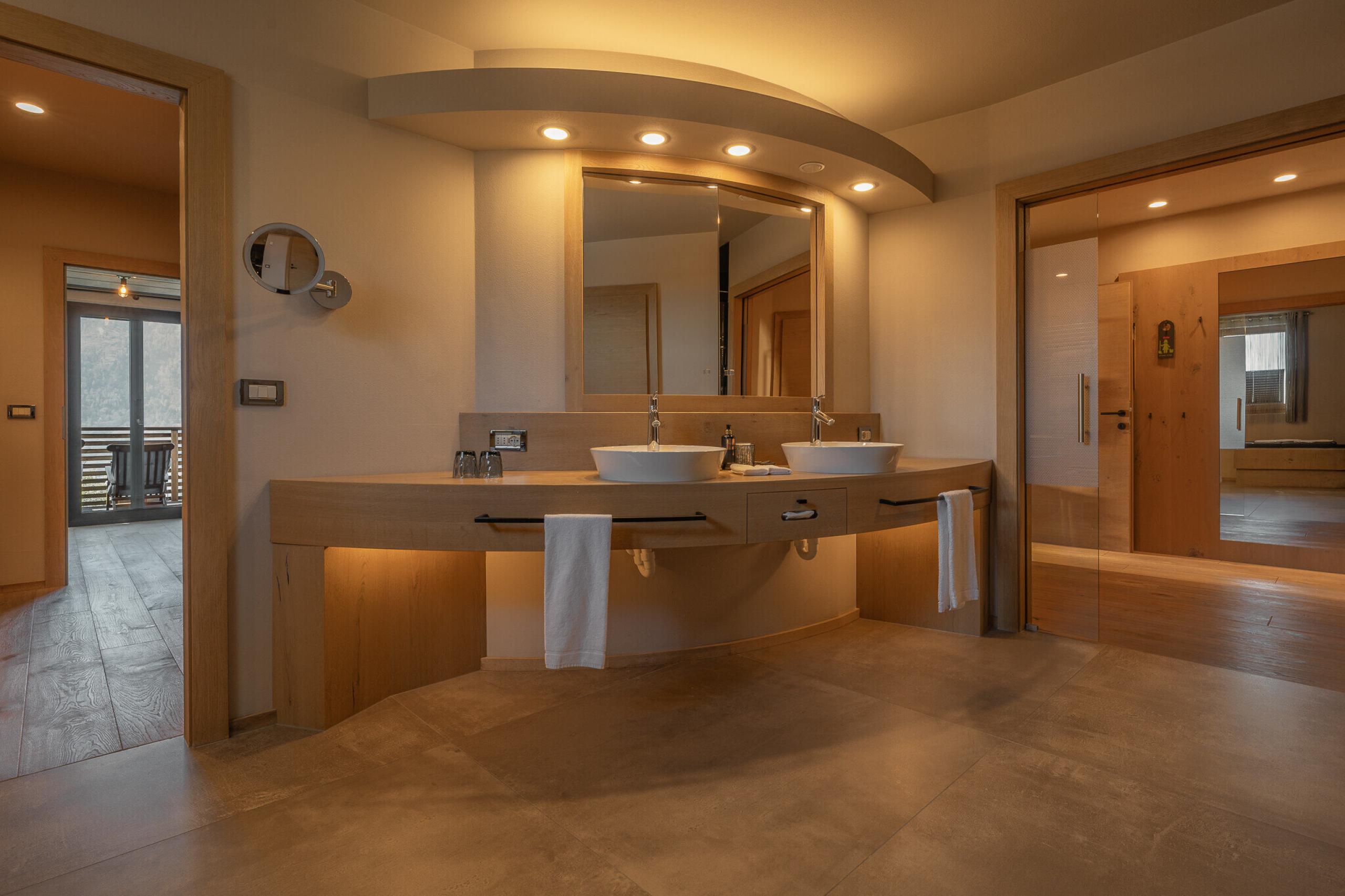 Suite with 73 m² and separable additional room, south-facing balcony, walk-in closet, air conditioning, 2x TV, hi-fi system, minibar, bathtub and shower with rainfall, bidet, separate toilet