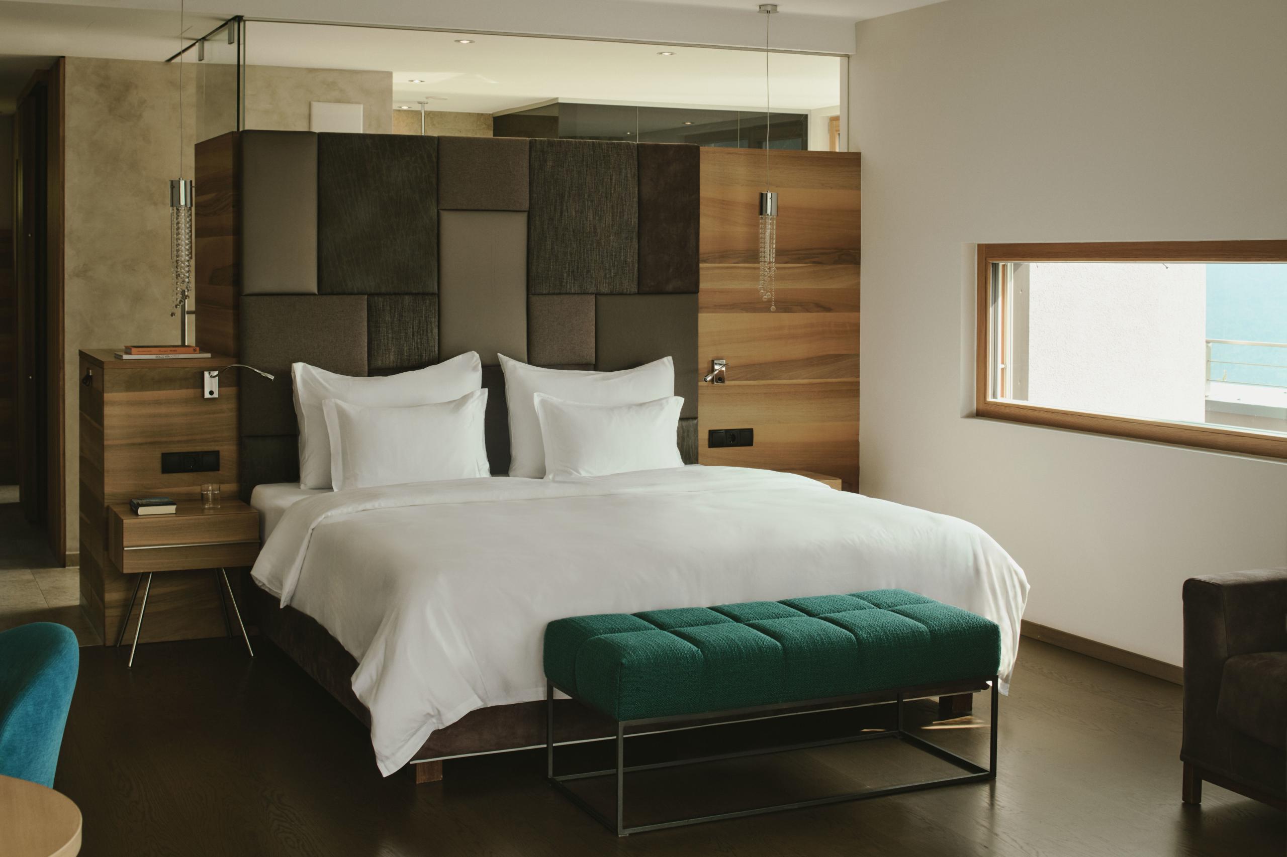 Scoprite le nostre 59 camere e suite eleganti e moderne nell’inconfondibile design dell’ALPIANA con vista spettacolare sulle montagne dell’Alto Adige e sul parco dell’ALPIANA.