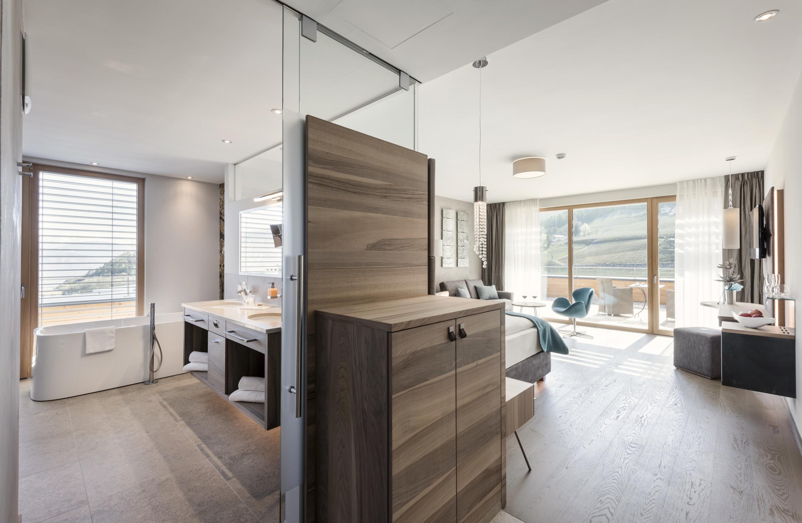 Scoprite le nostre 59 camere e suite eleganti e moderne nell’inconfondibile design dell’ALPIANA con vista spettacolare sulle montagne dell’Alto Adige e sul parco dell’ALPIANA.