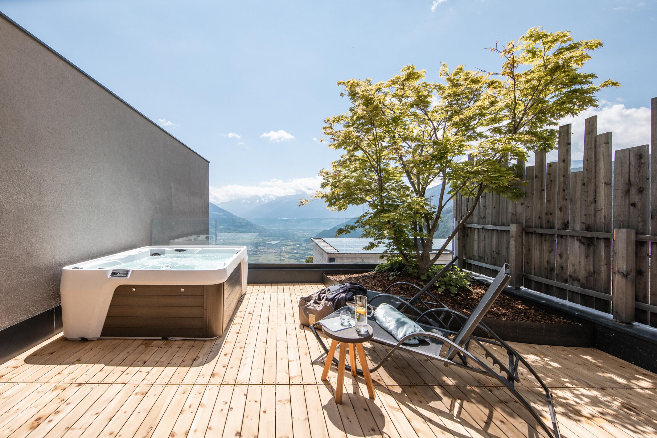 In questa suite meravigliosa alloggiate con le montagne più alte della Val Venosta a livello degli occhi. È situata all‘ultimo piano del DAS GERSTL Alpine Retreat e la sua vasca idromassaggio privata sulla terrazza pizzica la vostra pelle.