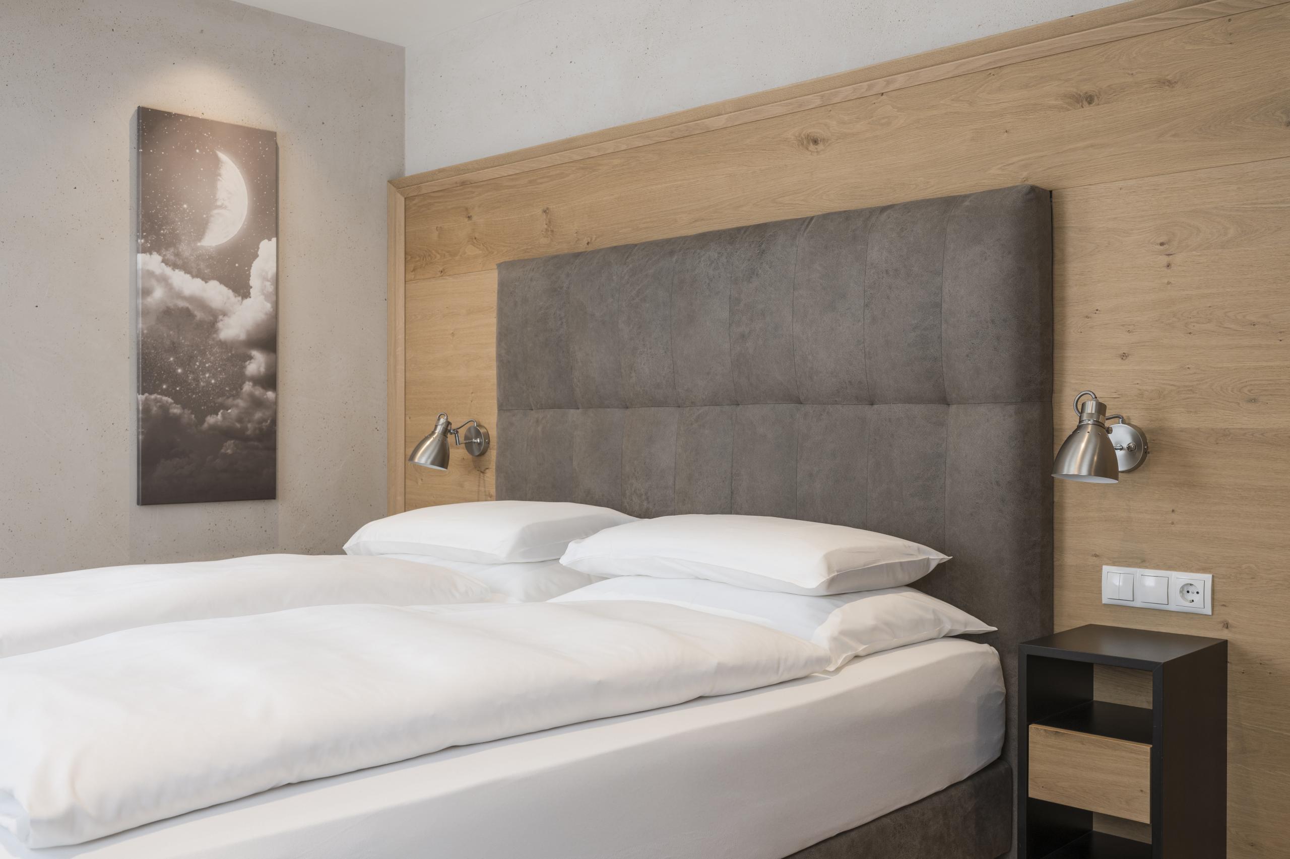 31 m² - Più spazio per le coccole e per sentirsi a proprio agio. Con un accogliente angolo soggiorno, pavimento in legno, mobili in legno naturale, bagno moderno con grande doccia walk-in, WC separato (senza bidet), frigobar, cassaforte, flat screen TV, telefono, WIFI gratuito, balcone rivolto a nord, posto garage e aria condizionata.