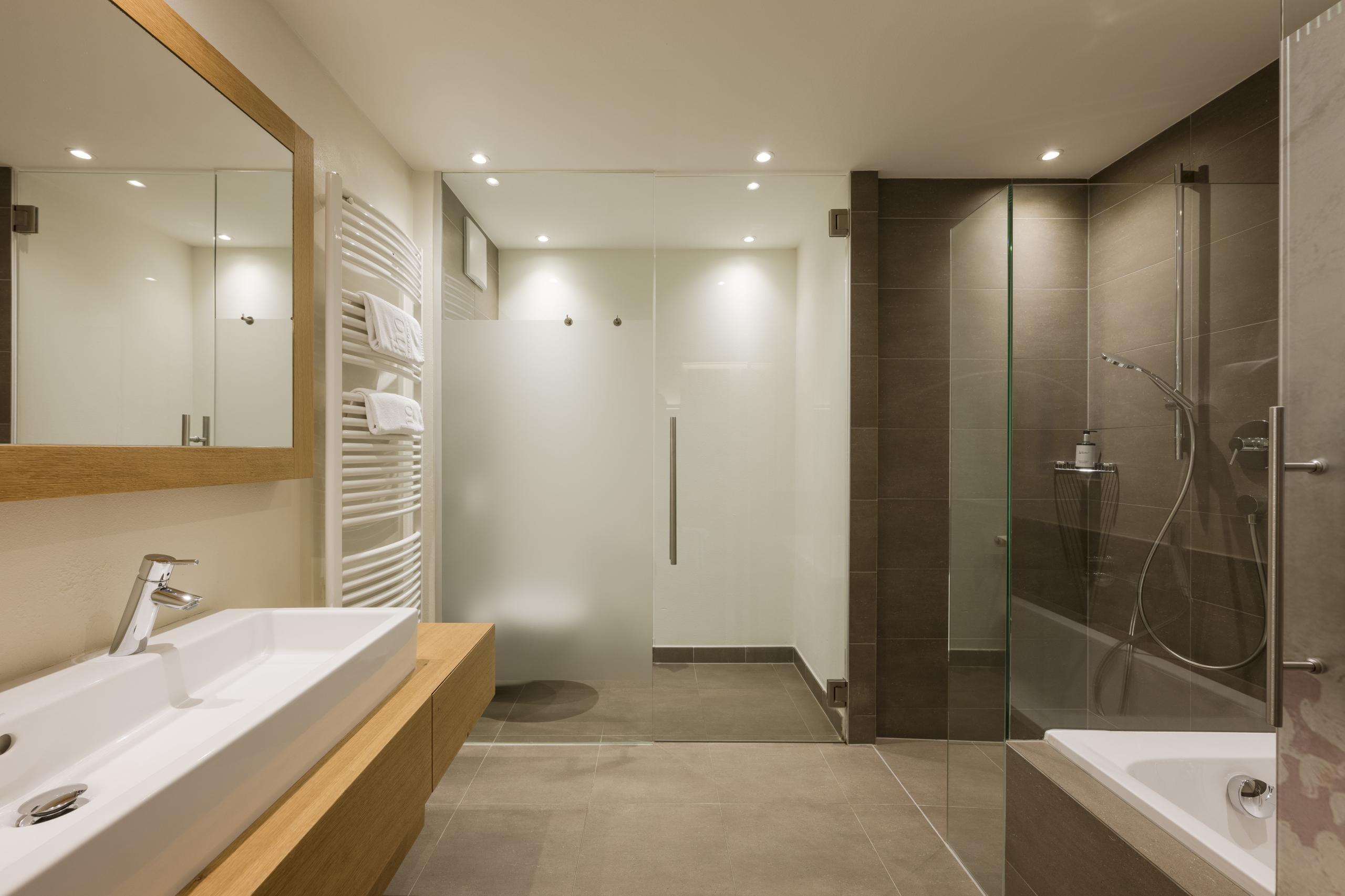 45 m² - Aperta, luminosa e piena di semplice eleganza. Con un arredamento esclusivo con accogliente salottino e poltrona, pavimento in legno, mobili in legno naturale, bagno moderno con vasca da bagno e doccia, doppio lavabo, WC separato (senza bidet), confortevole letto a scomparsa ribaltabile per una persona aggiuntiva, frigobar, cassaforte, flat screen TV, telefono, WIFI gratuito, grande balcone rivolto a sud con sdraio relax, posto garage e aria condizionata.