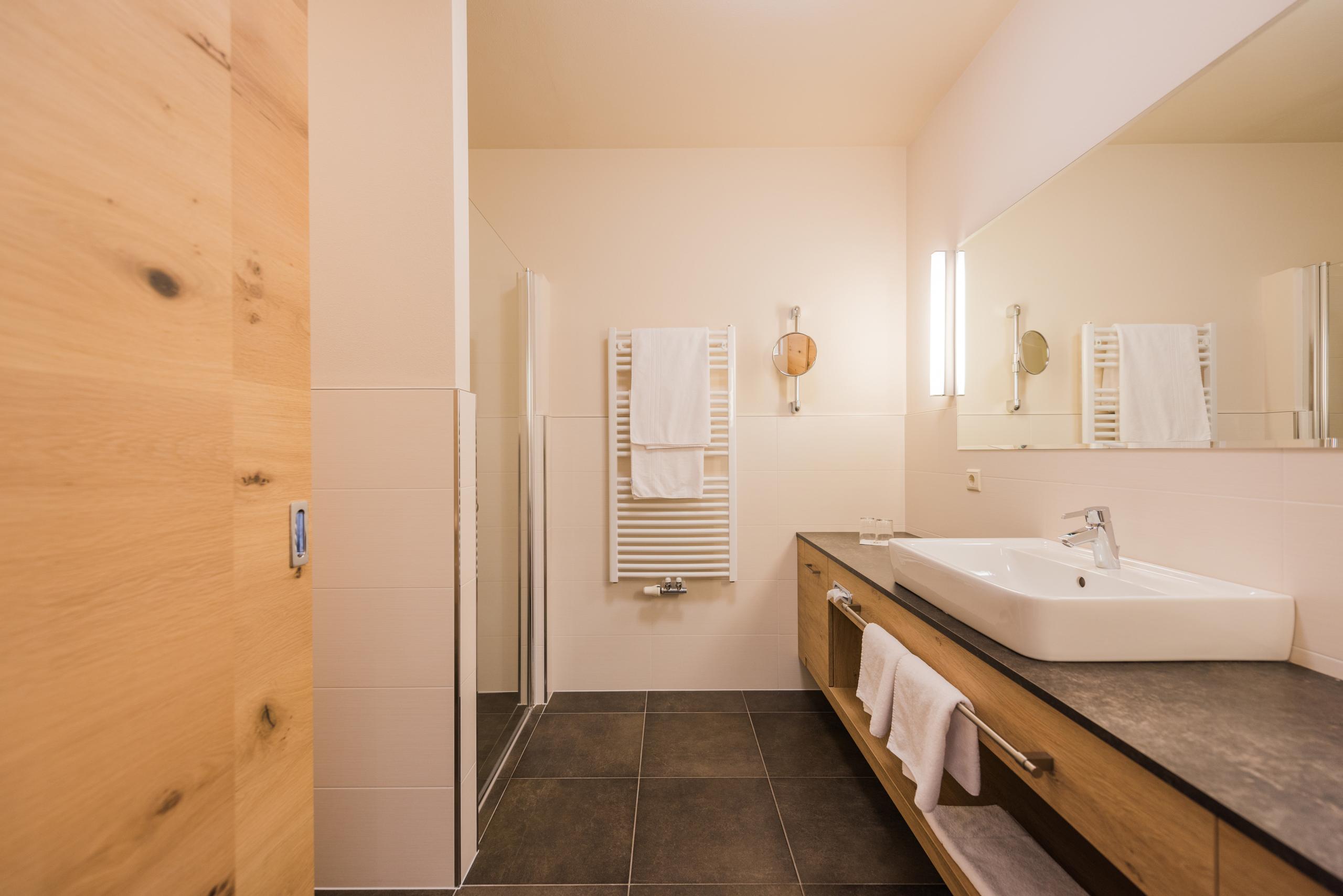 Pavimento in legno. Comodo letto matrimoniale di 2,10 m con meravigliosa vista sulle Dolomiti. Cabina armadio. Divano. Schermo piatto da 49 pollici. Free WiFi. Cassaforte. Minibar. Macchinetta per il caffè Cremesso. Balcone con vista sulle Dolomiti. Bagno con doccia. Asciugacapelli e specchio da trucco. WC e bidet separati. Borsa wellness con accappatoi, teli da bagno e ciabattine. Incluso parcheggio sotterraneo.