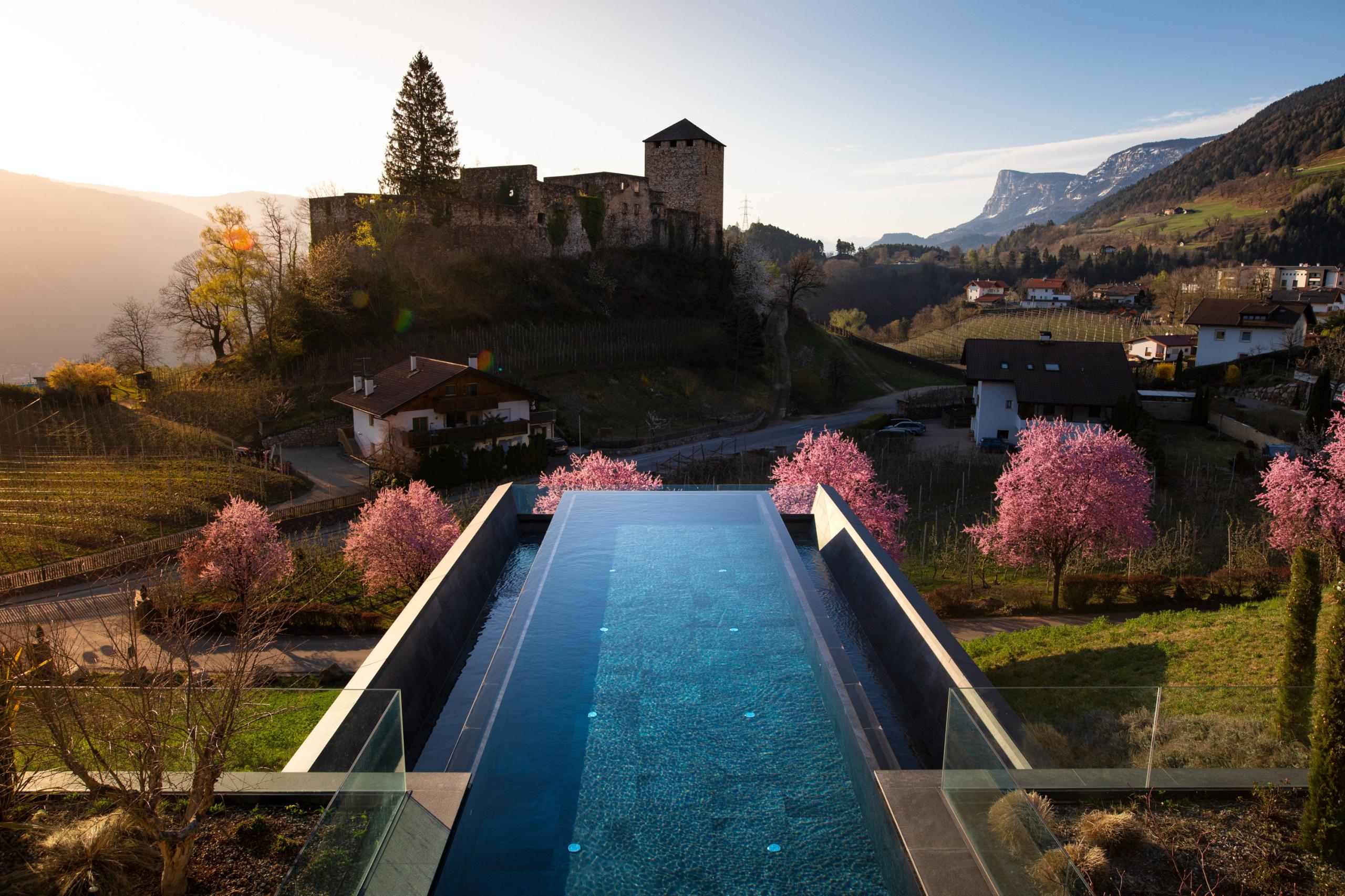 Questo splendido hotel wellness si trova a circa 700 metri s.l.m. nella soleggiata Foiana, sopra Lana. Grazie al suo clima mite, Foiana è un’amata stazione climatica, nonché il punto di partenza ideale per godersi emozionanti escursioni e giri in bici e respirare l’aria pura e salubre di montagna. Una vacanza in questa località immersa tra vigneti e frutteti vi regalerà una meravigliosa vista sulla Valle dell’Adige.