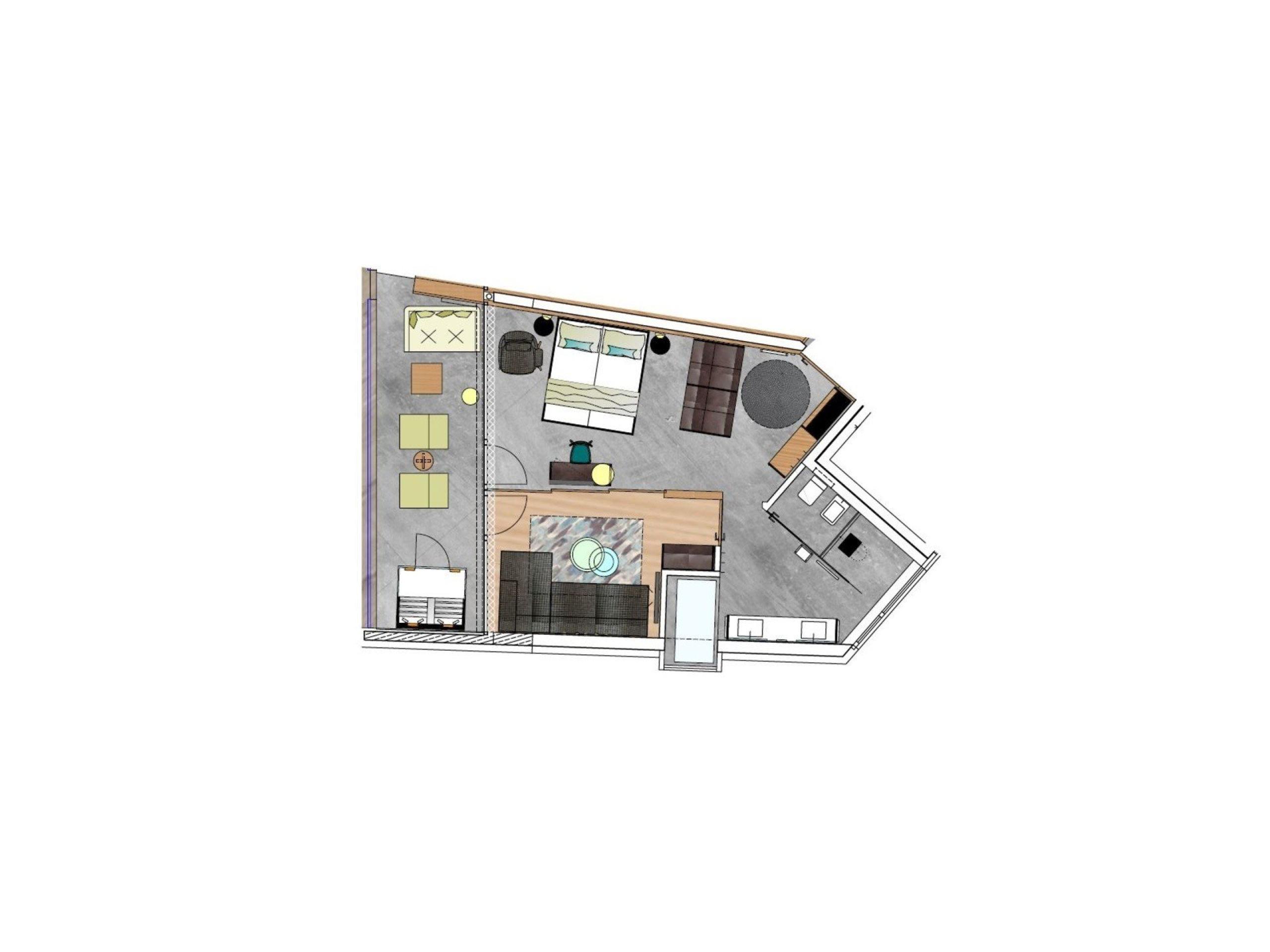 Suite accogliente e moderna, zona giorno e zona notte separate, arredamento in materiali naturali, pavimento in cemento naturale color terra, larice massiccio nostrano spazzolato, intonaco grezzo a spruzzo sul soffitto per una piacevole acustica ambientale, armadio e letto in pelle, divano letto (misura francese), scrivania in pelle, lampada da terra con poltrone di design, bagno con doppio lavabo, doccia, vasca con vista sulla natura, WC con bidet, TV a schermo piatto, Wi-Fi gratuito, minibar, cassaforte, posto macchina in garage - animali domestici non ammessi