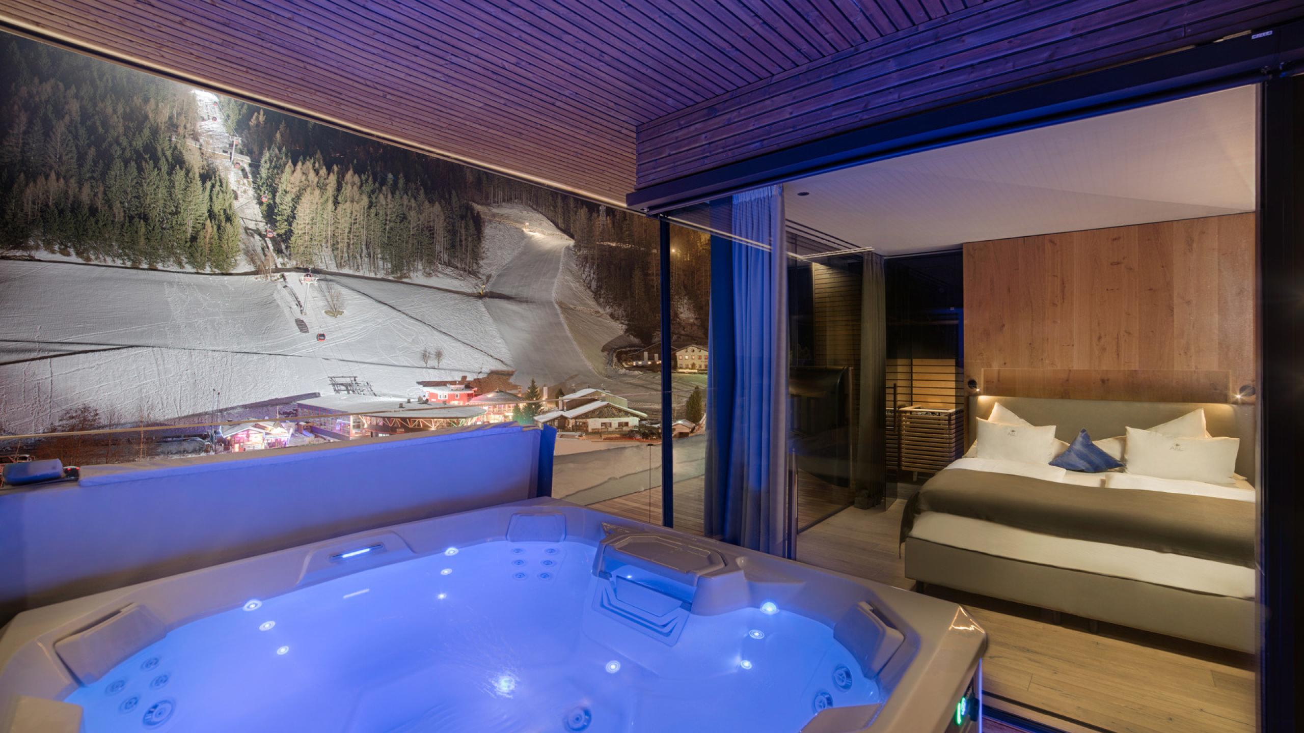 Wellness suite di lusso al 5° piano con esclusiva loggia privata sul tetto con vasca idromassaggio freestanding, 72 m²