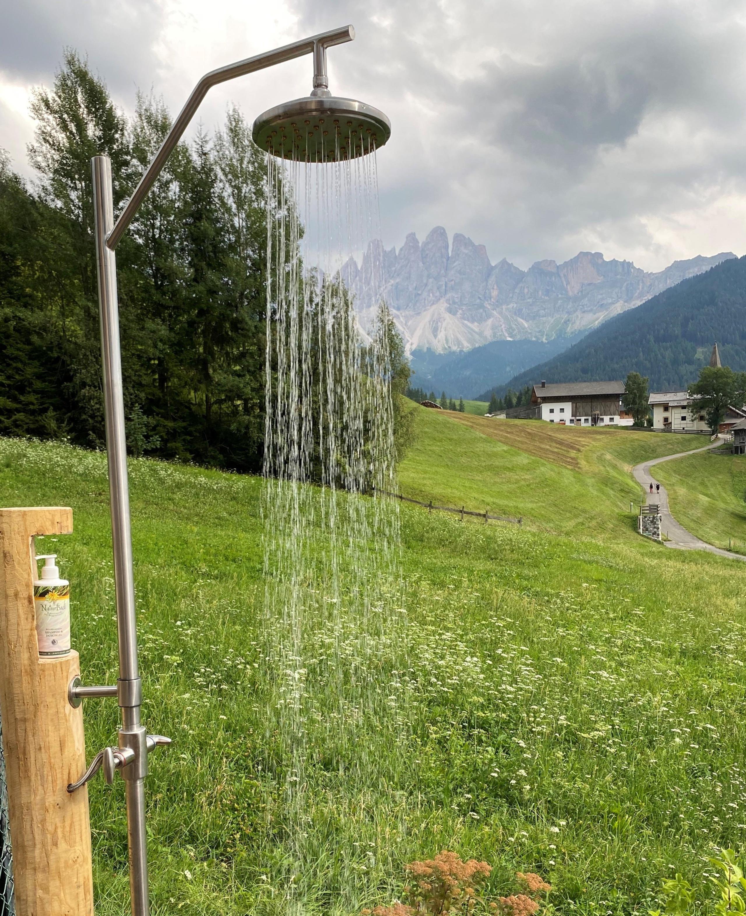 La giornata può iniziare con una doccia al mattino in giardino. Le calde serate estive e una deliziosa colazione sono un piacere anche all'aperto. Un'attrazione speciale è la vasca in legno riscaldata per fare il bagno con una fantastica vista sulle cime Geisler.