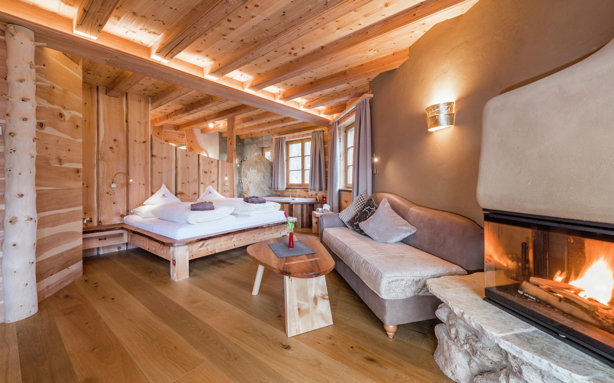 Questa suite si trova nella casetta Terra, una delle due casette dei bagni alpini situate nel nostro giardino benessere, ed è completamente realizzata in legno di cembro. Con un caminetto aperto, un’accogliente area soggiorno e un balcone con vista sulla natura circostante della Valle di Luson, offre un rifugio unico. L’area benessere privata del Badehaus Quarzit, con grotta salina fluttuante, è accessibile gratuitamente dalle 10 alle 22 con la prenotazione di questa suite.