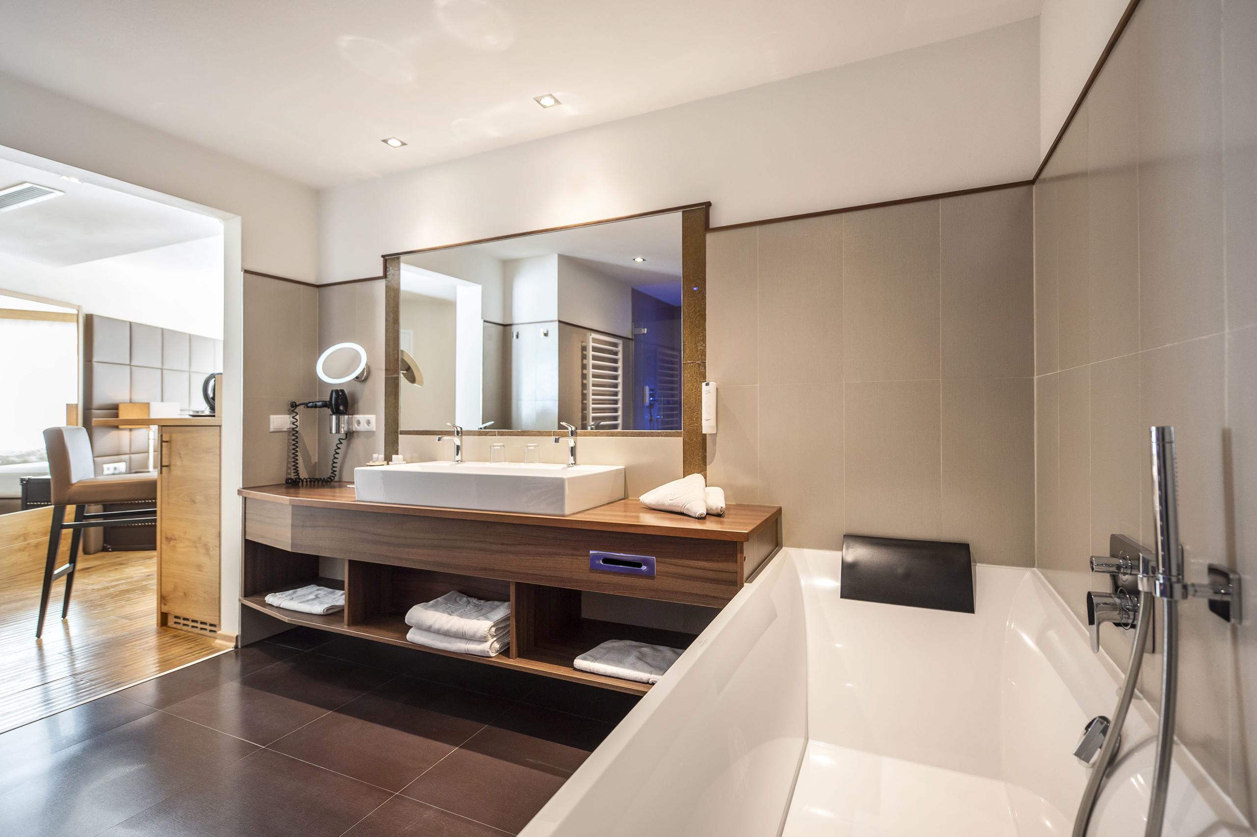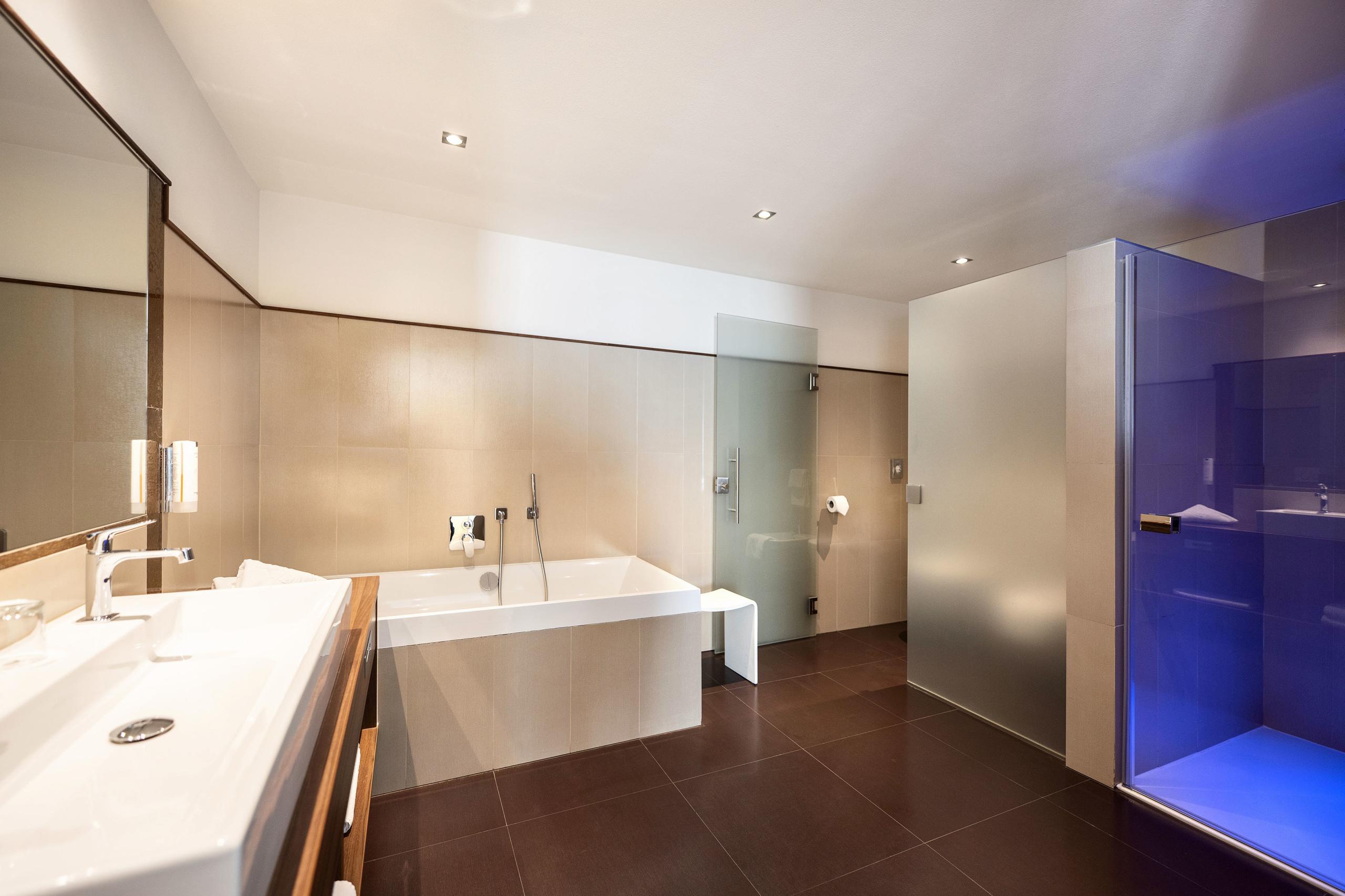 letti extragrandi, divano e scrivania con accesso a internet, cabina-armadio, bagno con vasca e doccia, doppio lavabo, WC e bidet separati, minibar, TV e radio, grande balcone a sud. Garage sotterraneo incluso.