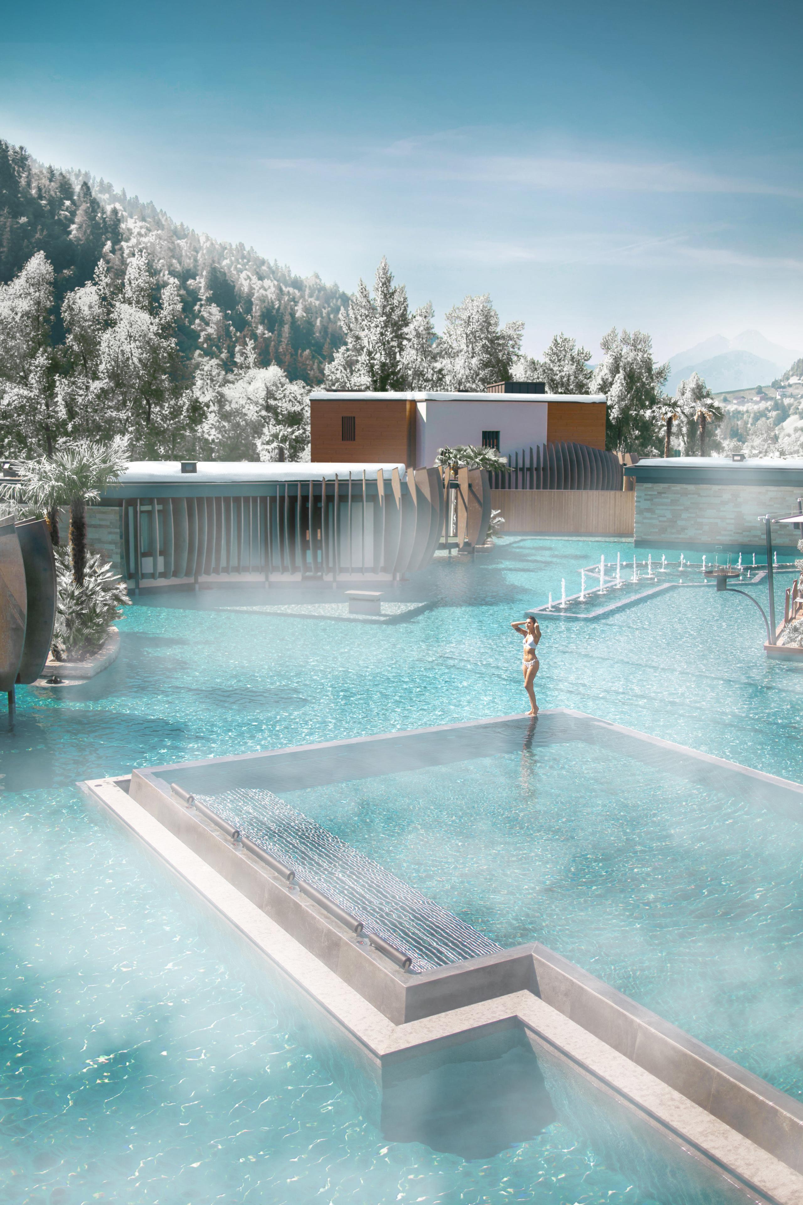 - Bacino balneare di 4.500 m² con un diametro di 105 m (la piscina più grande del Alto Adige)