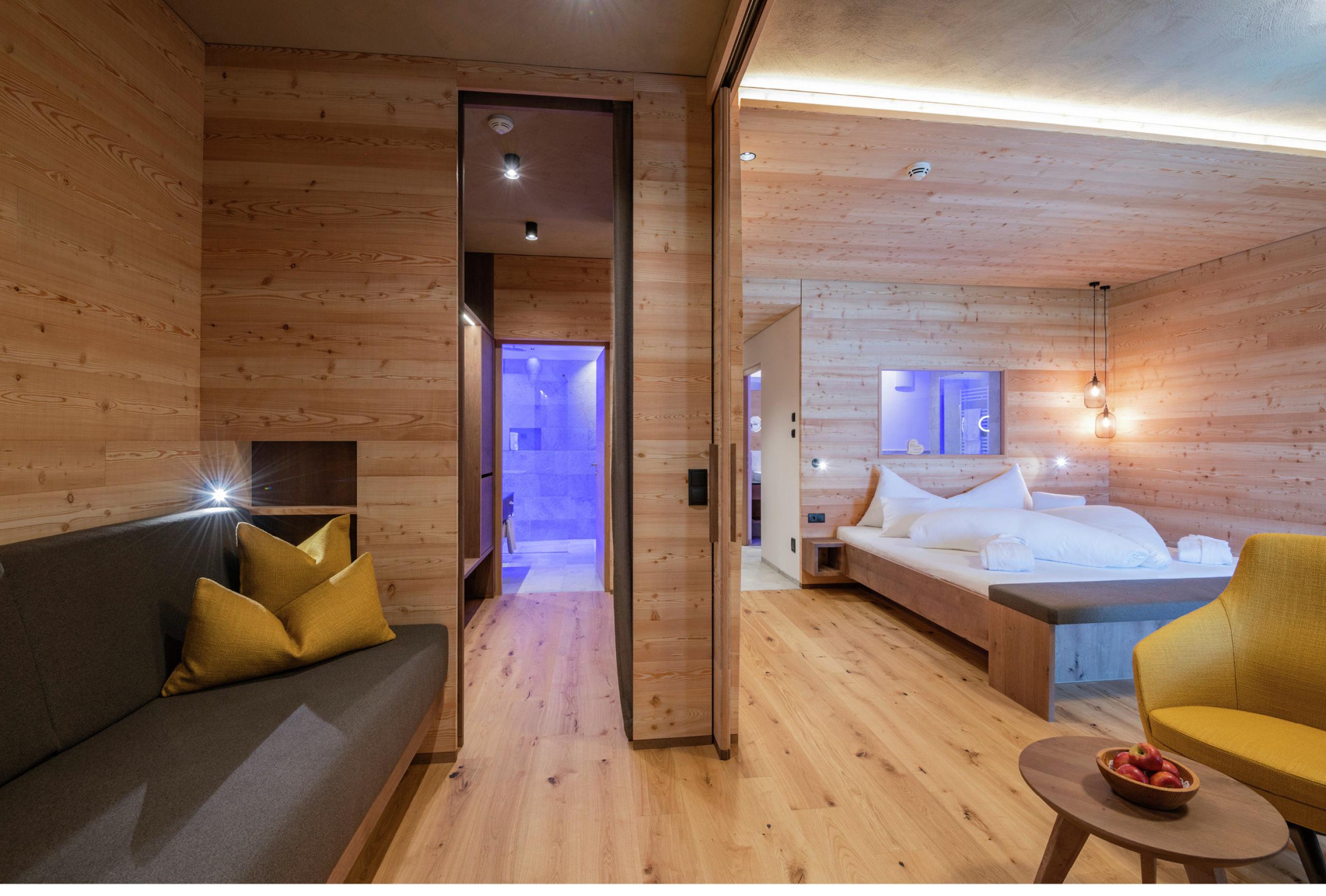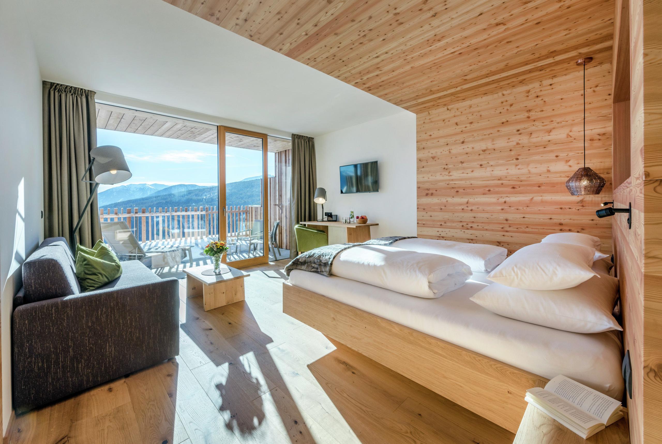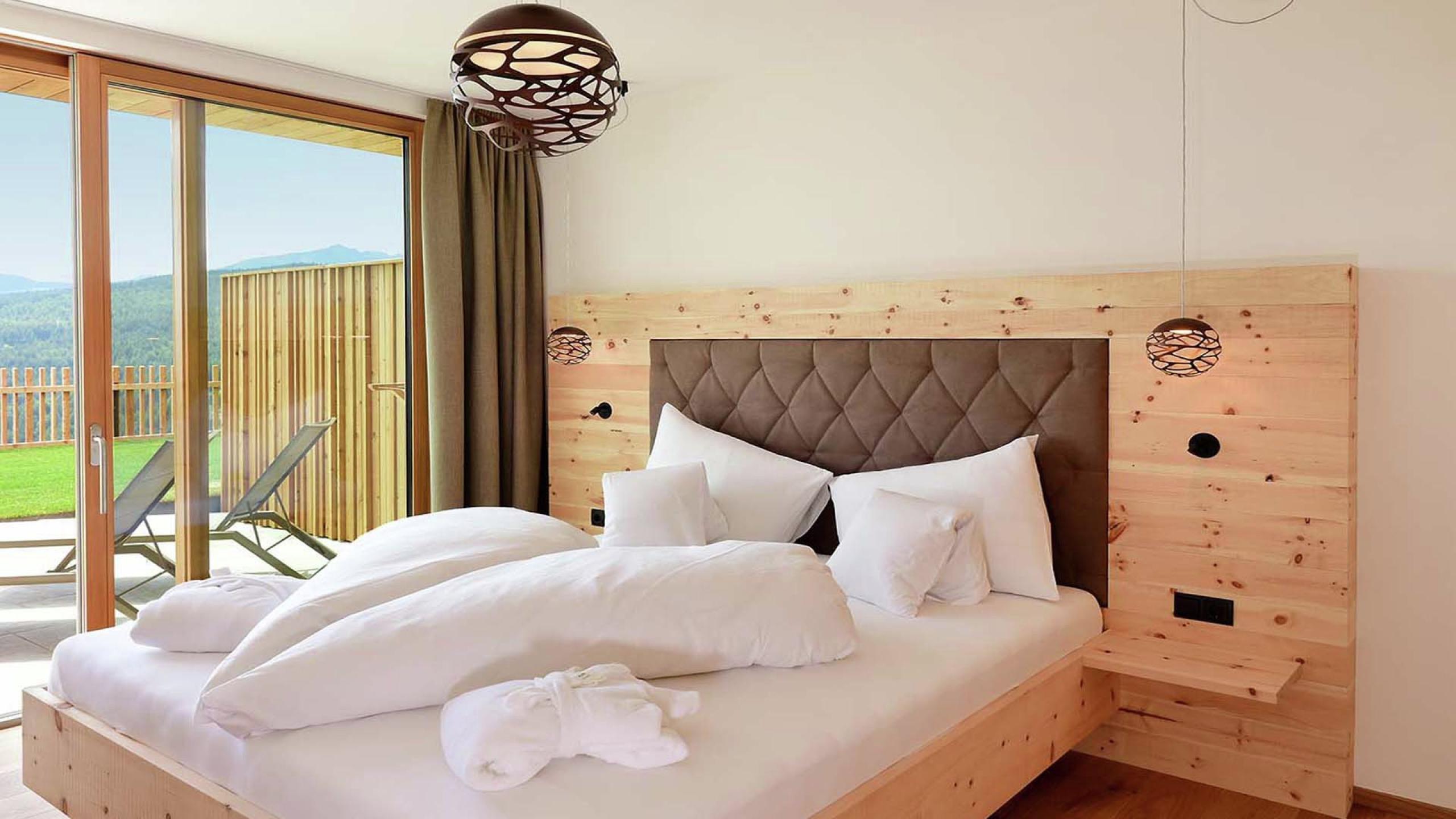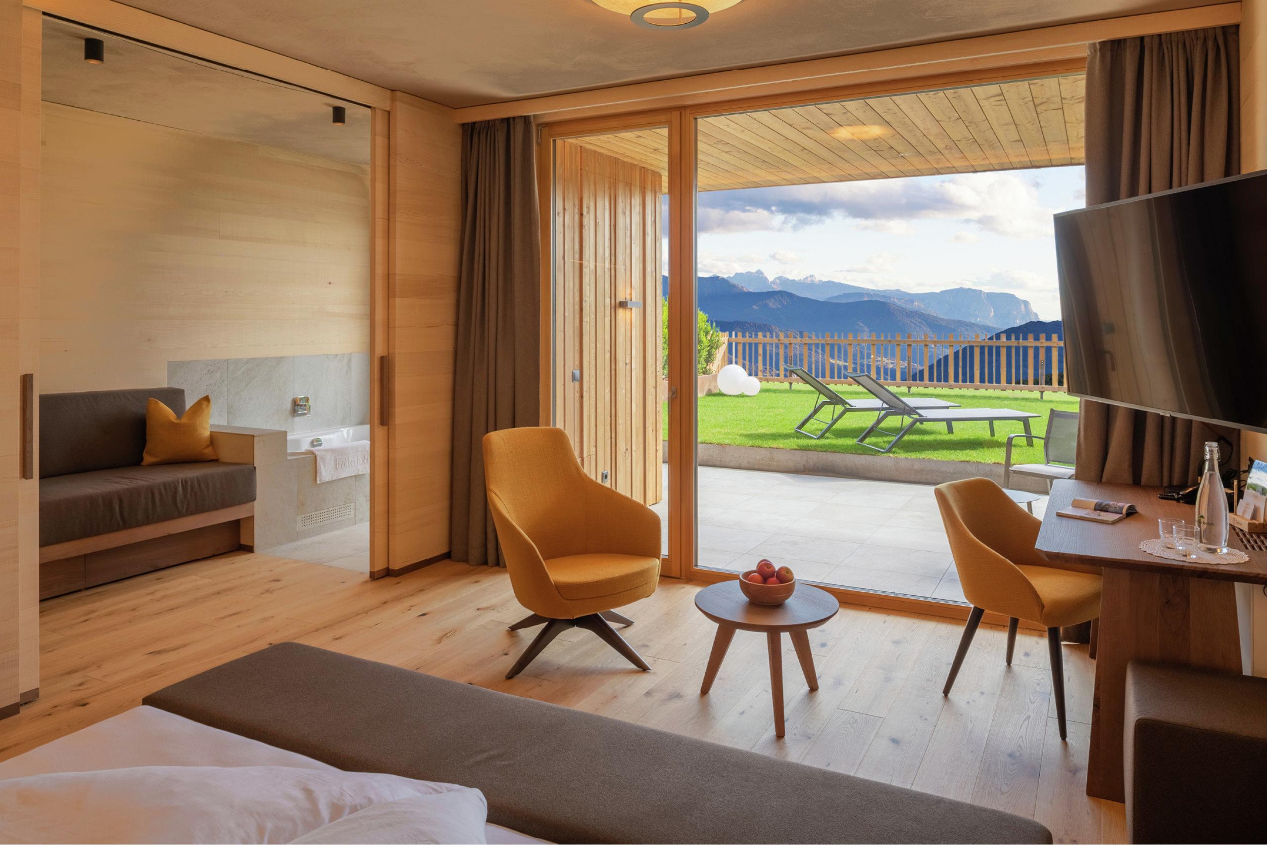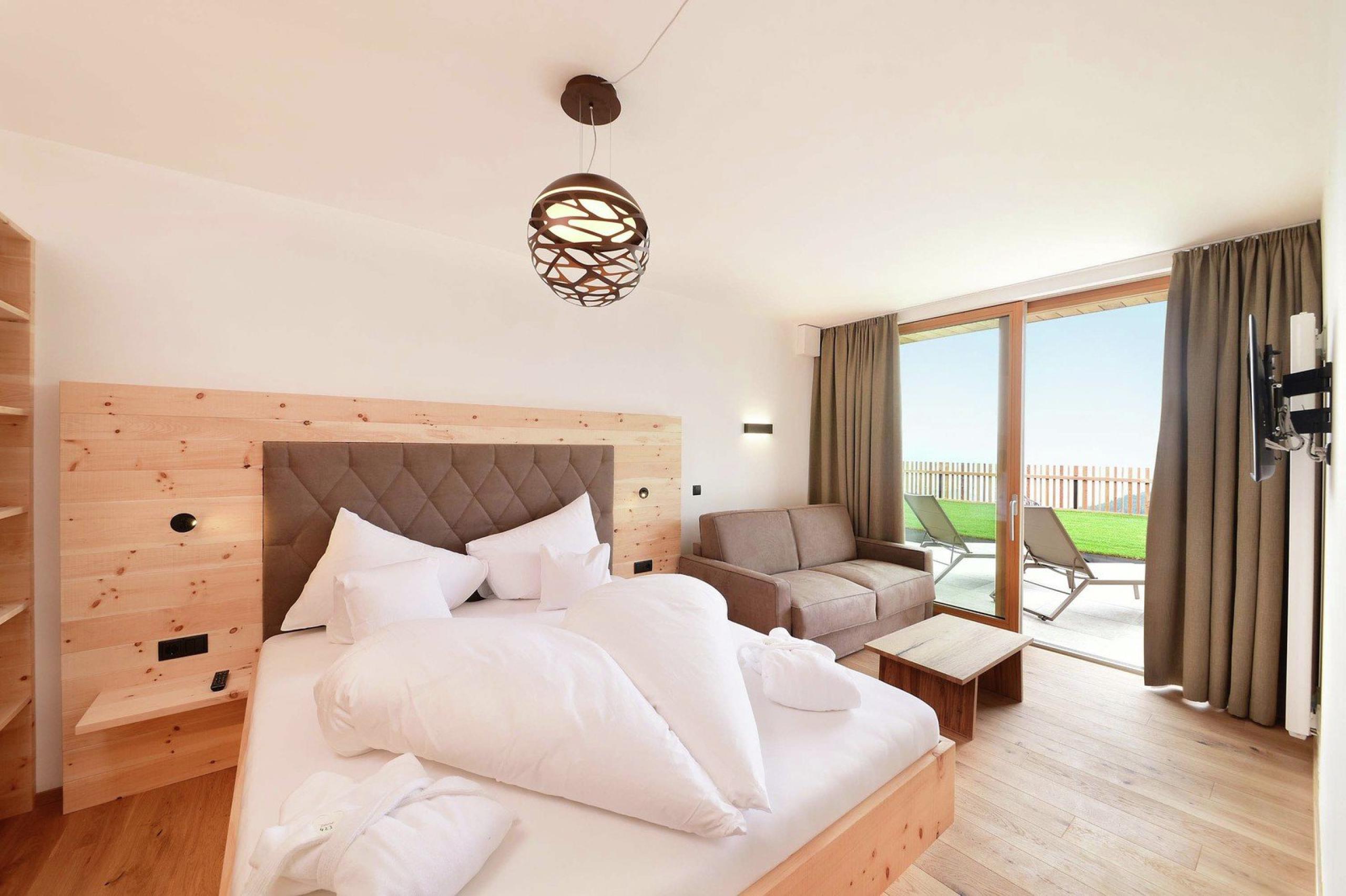 Le spaziose suite con terrazze si inseriscono armoniosamente nello scenario naturale del Monti di Fundres, che potrete esplorare senza auto partendo dall’hotel e percorrendo l’idilliaca Valle di Altafossa.