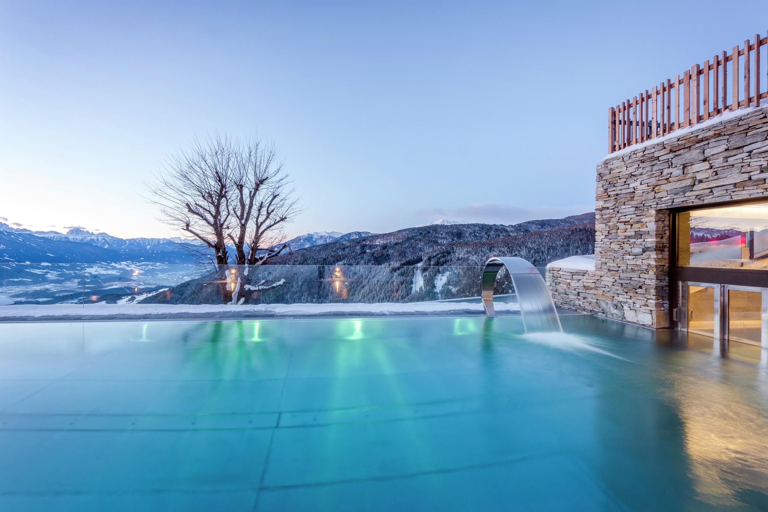 Il lussuoso Tratterhof Mountain Sky Hotel si trova tra la Valle Isarco e la Val Pusteria, a un’altitudine di 1 500 metri, e grazie alla sua posizione da sogno sul soleggiato altopiano di Maranza offre una vista mozzafiato sulle Dolomiti.